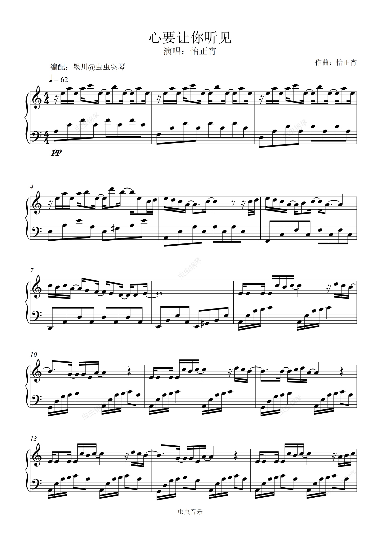 钢琴谱:心要让你听见—怡正宵—C调编配