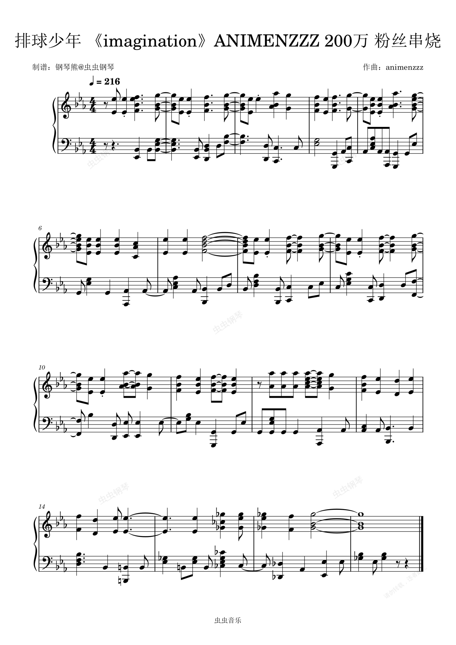 钢琴谱:排球少年 《imagination》ANIMENZZZ 200万粉丝串烧 喜欢的兄弟记得点小红心哦~👇👇👇