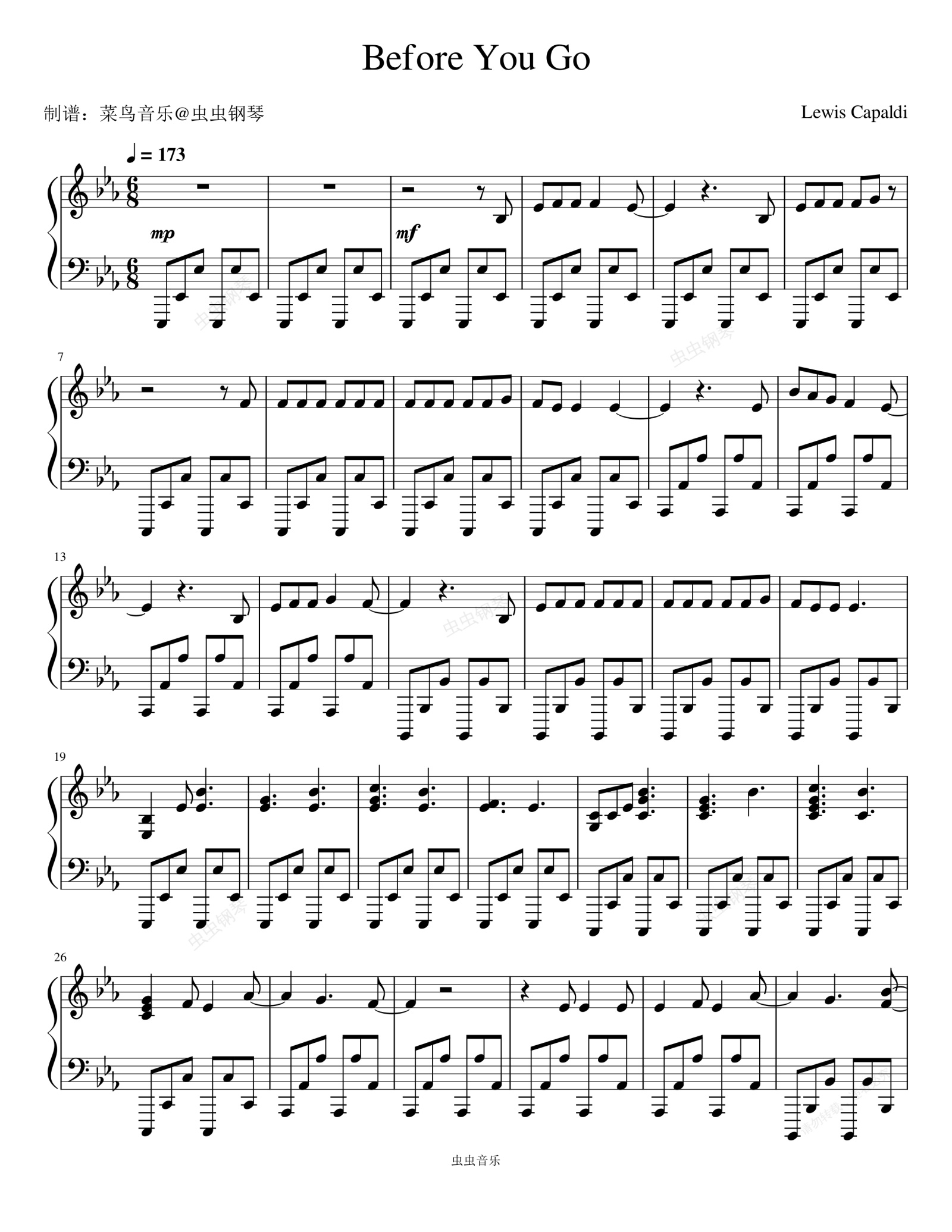 钢琴谱:Before You Go - Lewis Capaldi