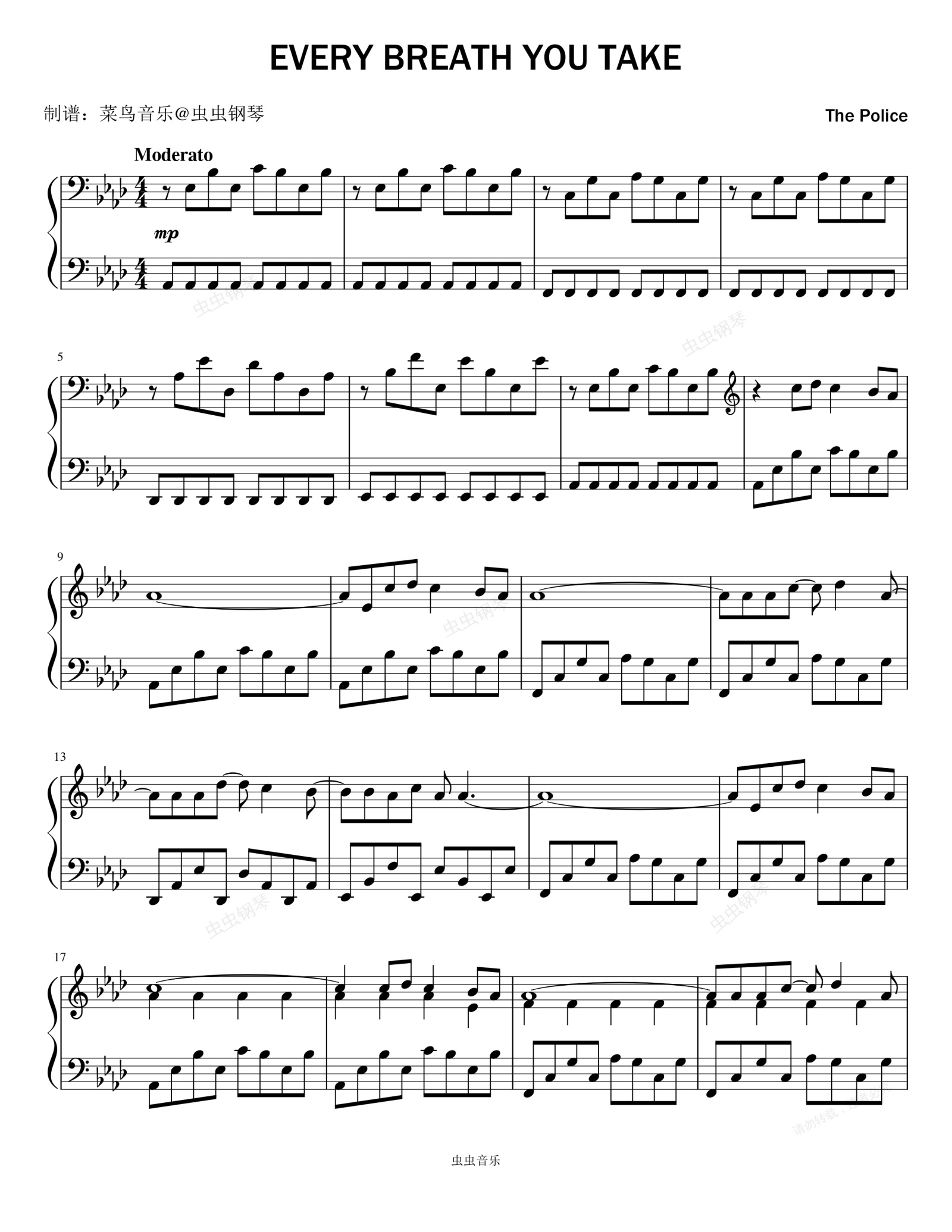 钢琴谱:Every Breath You Take《怪奇物语》电视剧插曲