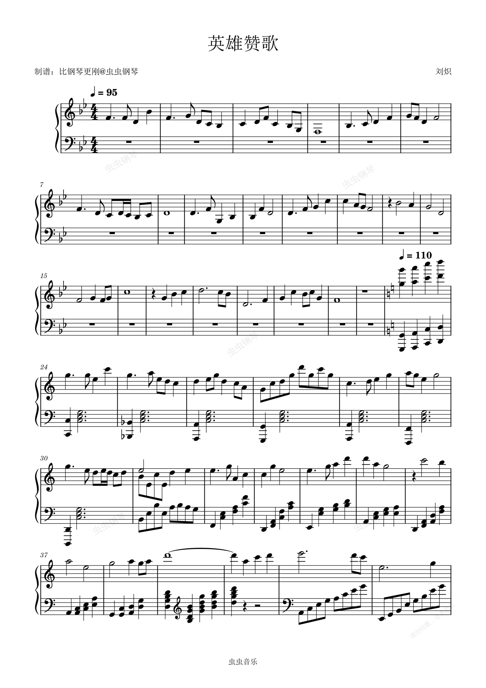 钢琴谱:英雄赞歌(谭维维、吕思清、陈萨版)