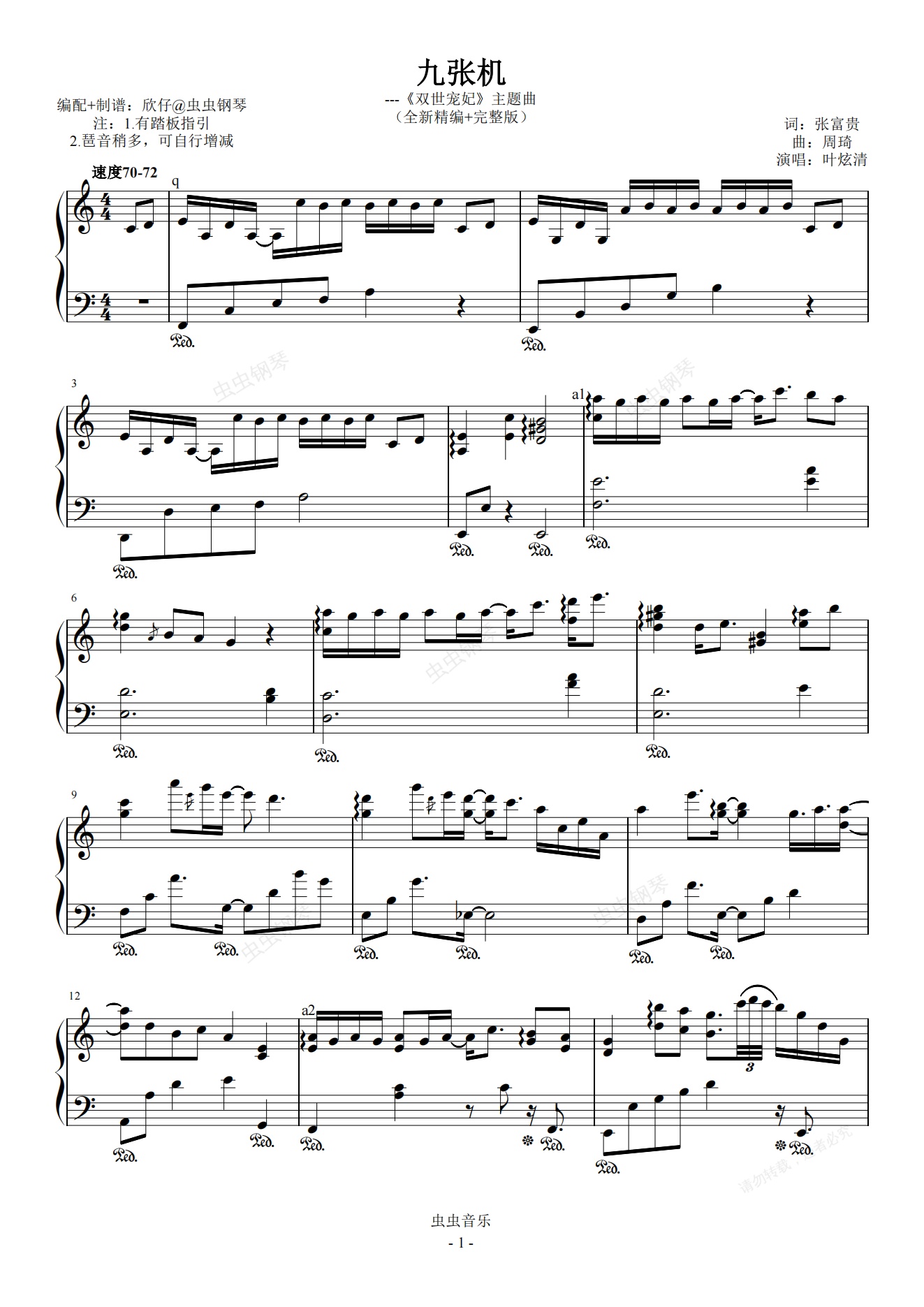钢琴谱:叶炫清-C《九张机》(《双世宠妃》主题曲、完整版)