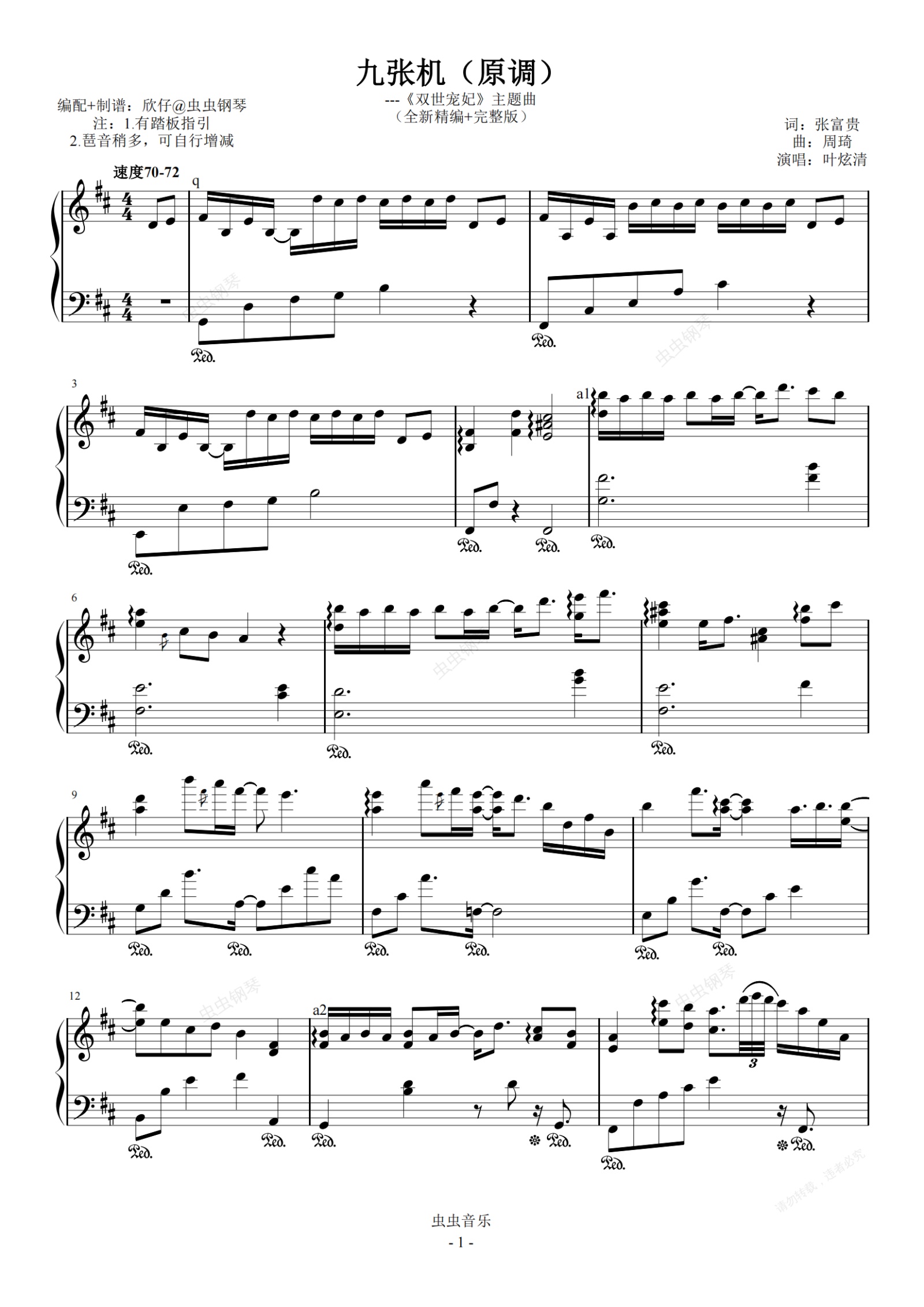 钢琴谱:叶炫清-D《九张机》(《双世宠妃》主题曲、完整版)