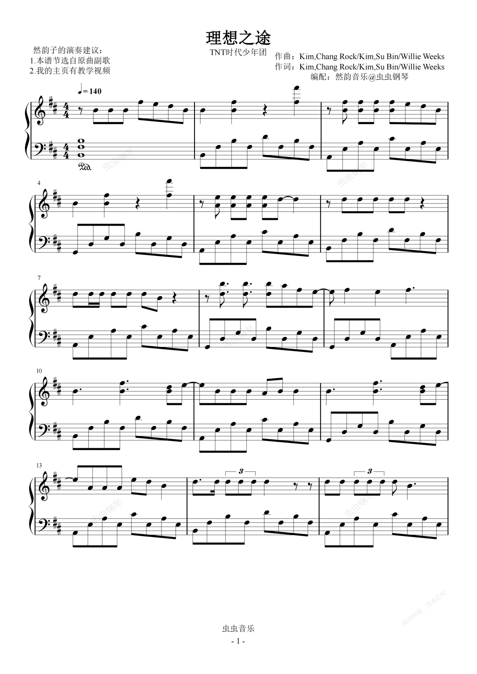 钢琴谱:【免费】理想之途-TNT时代少年团 节选独奏版 然韵音乐编配