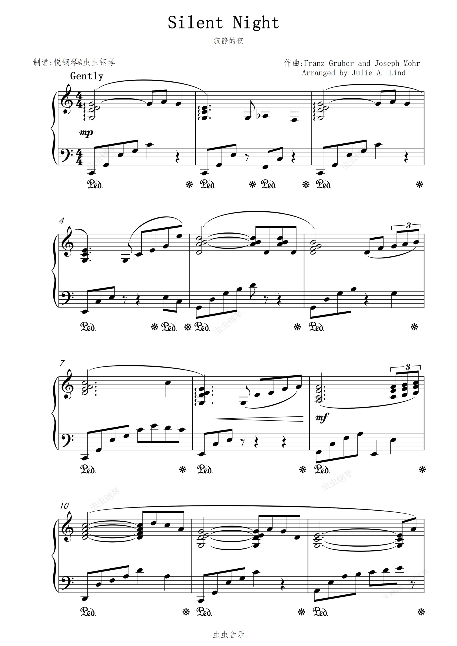 钢琴谱:寂静的夜//Silent Night【安静的小曲】