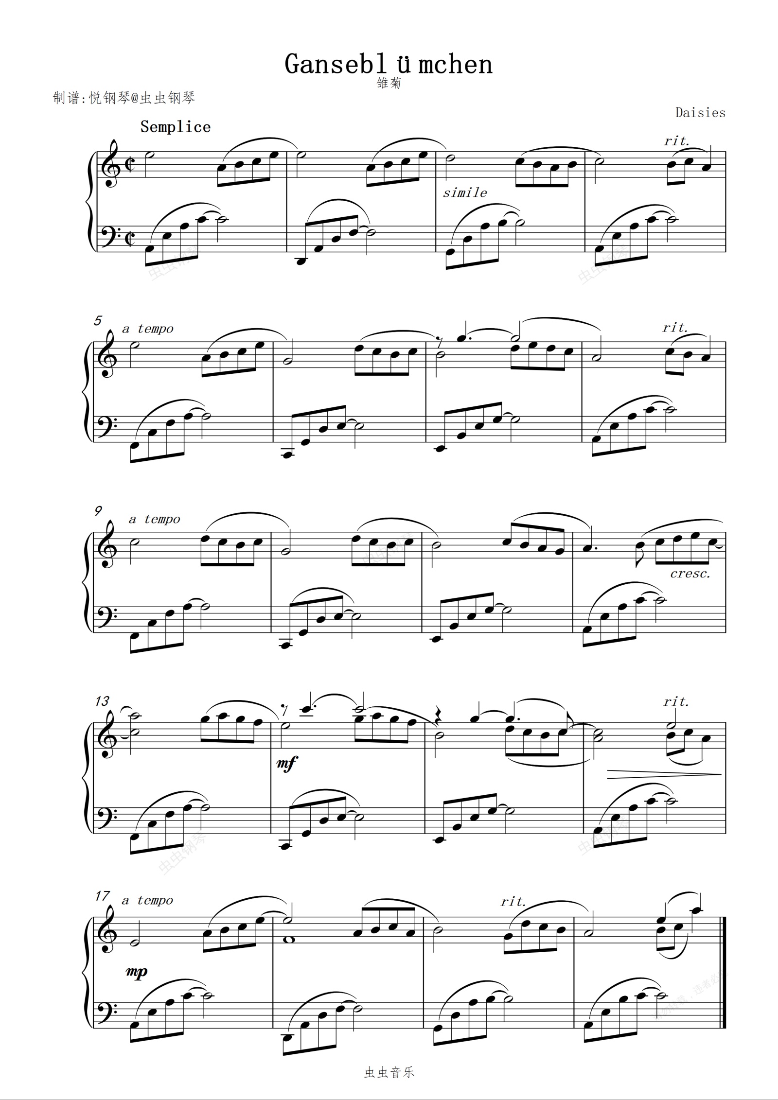 钢琴谱:雏菊//Ganseblümchen【治愈小曲】