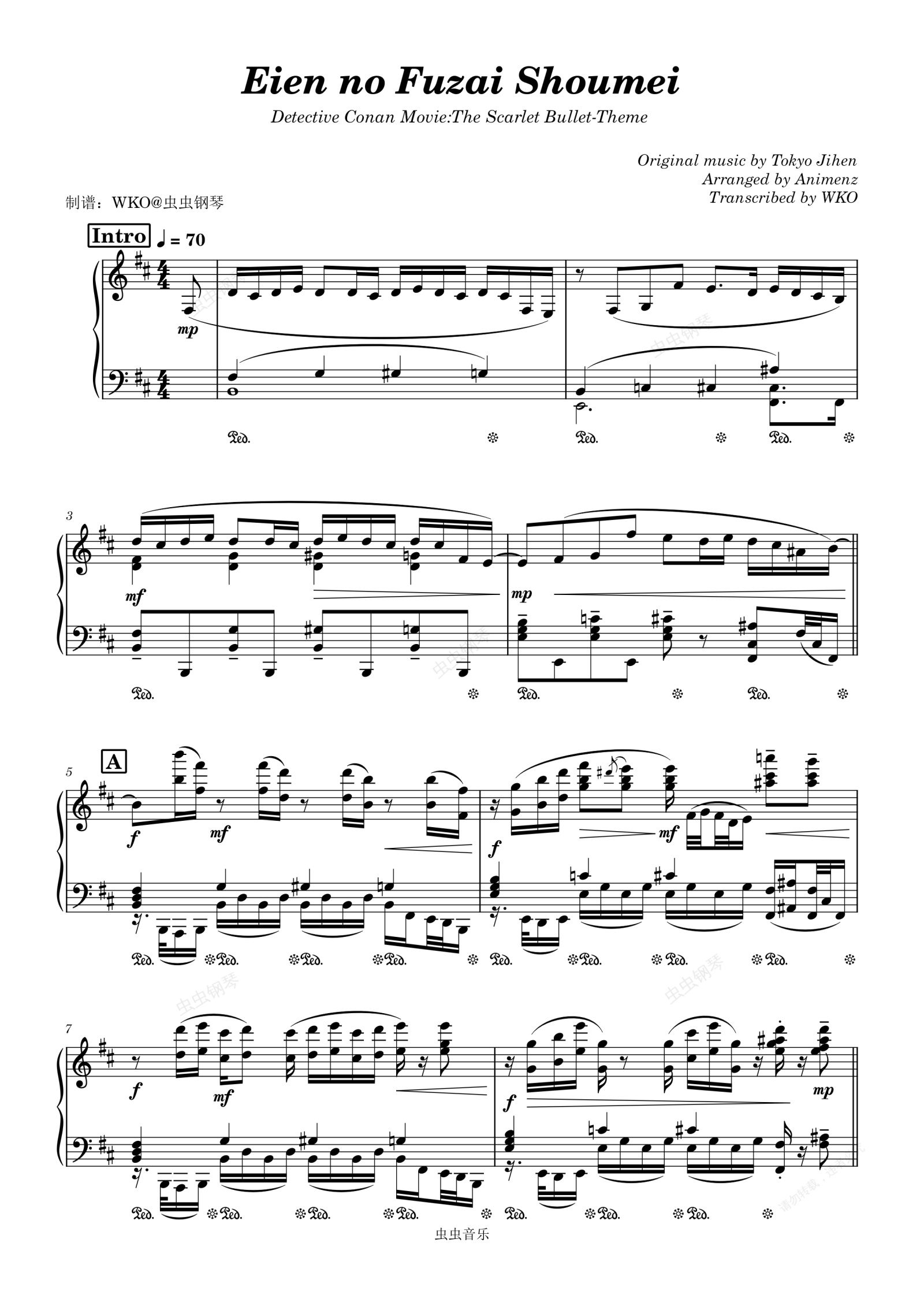 钢琴谱:永遠の不在証明 名侦探柯南:绯色的弹丸 主题曲 Animenz版
