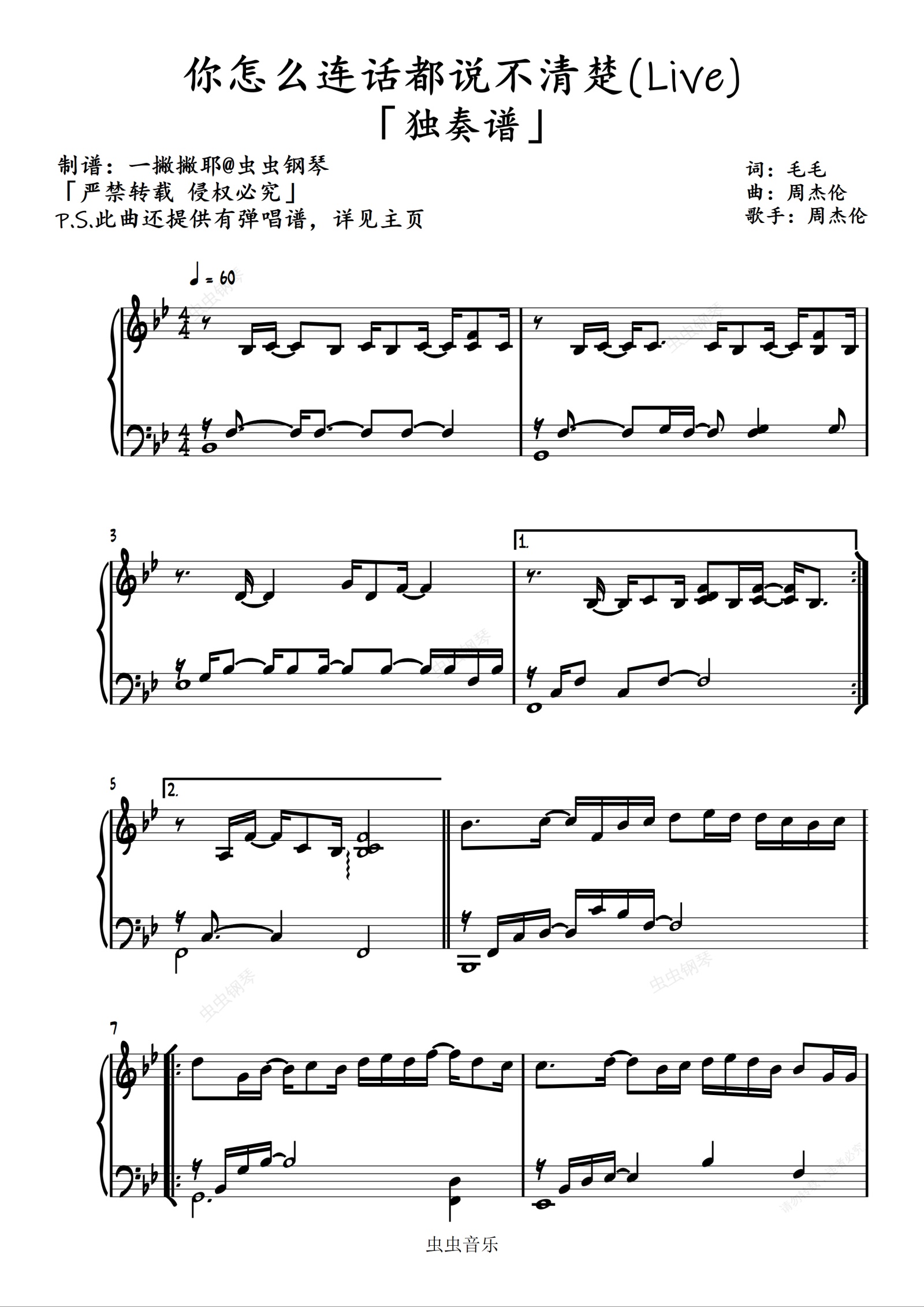钢琴谱:独奏谱《你怎么连话都说不清楚》周杰伦现场版「一撇撇耶」