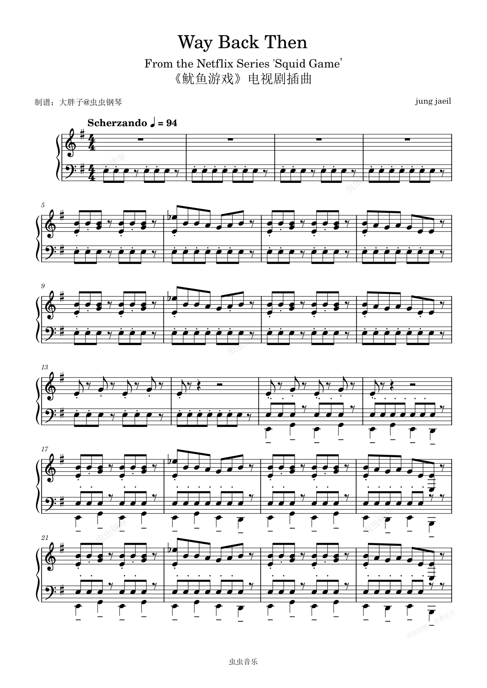 钢琴谱:Way Back Then (出自“鱿鱼游戏”)