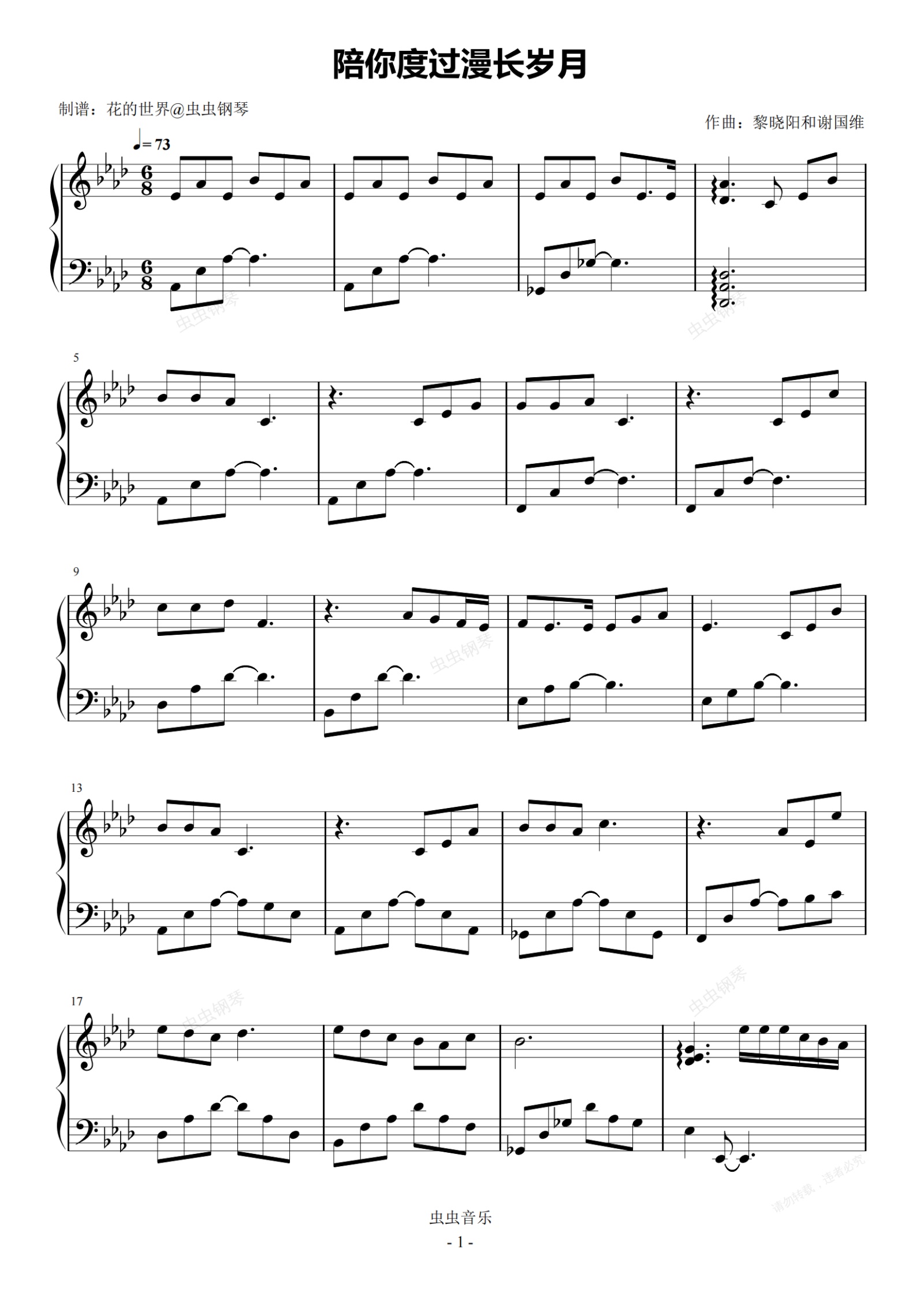 钢琴谱:陪你度过漫长岁月  原调简易版 陈奕迅