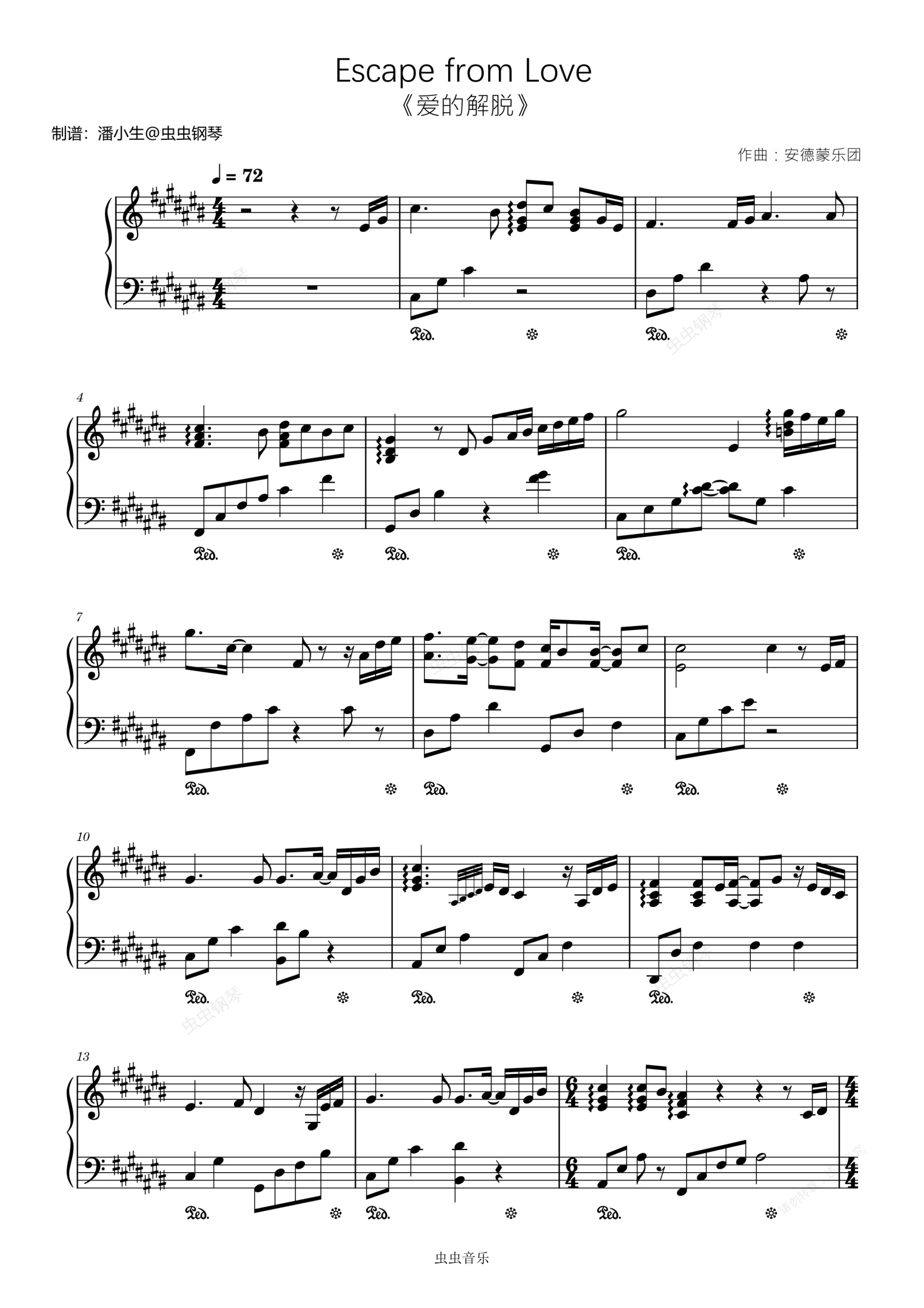 钢琴谱:Escape From Love,爱的解脱,《安德蒙减压音乐》钢琴曲,列车常用音乐