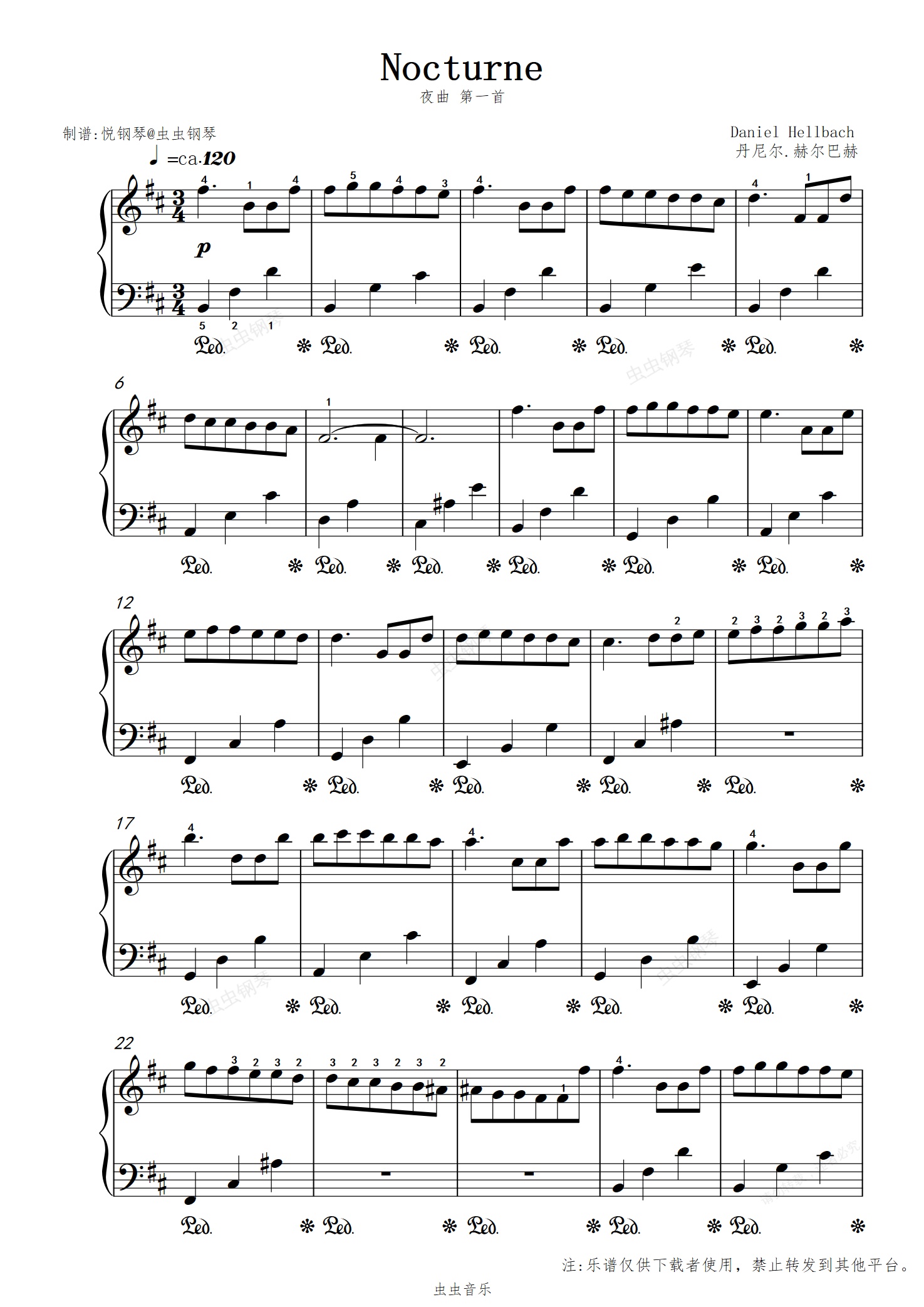 钢琴谱:夜曲//Daniel Hellbach【治愈小曲】