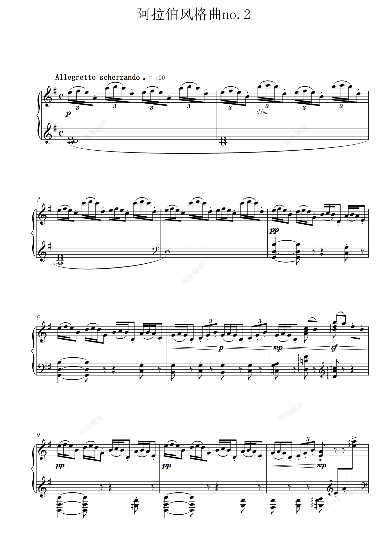 钢琴谱:八级-C-2. 阿拉伯风格曲第2首