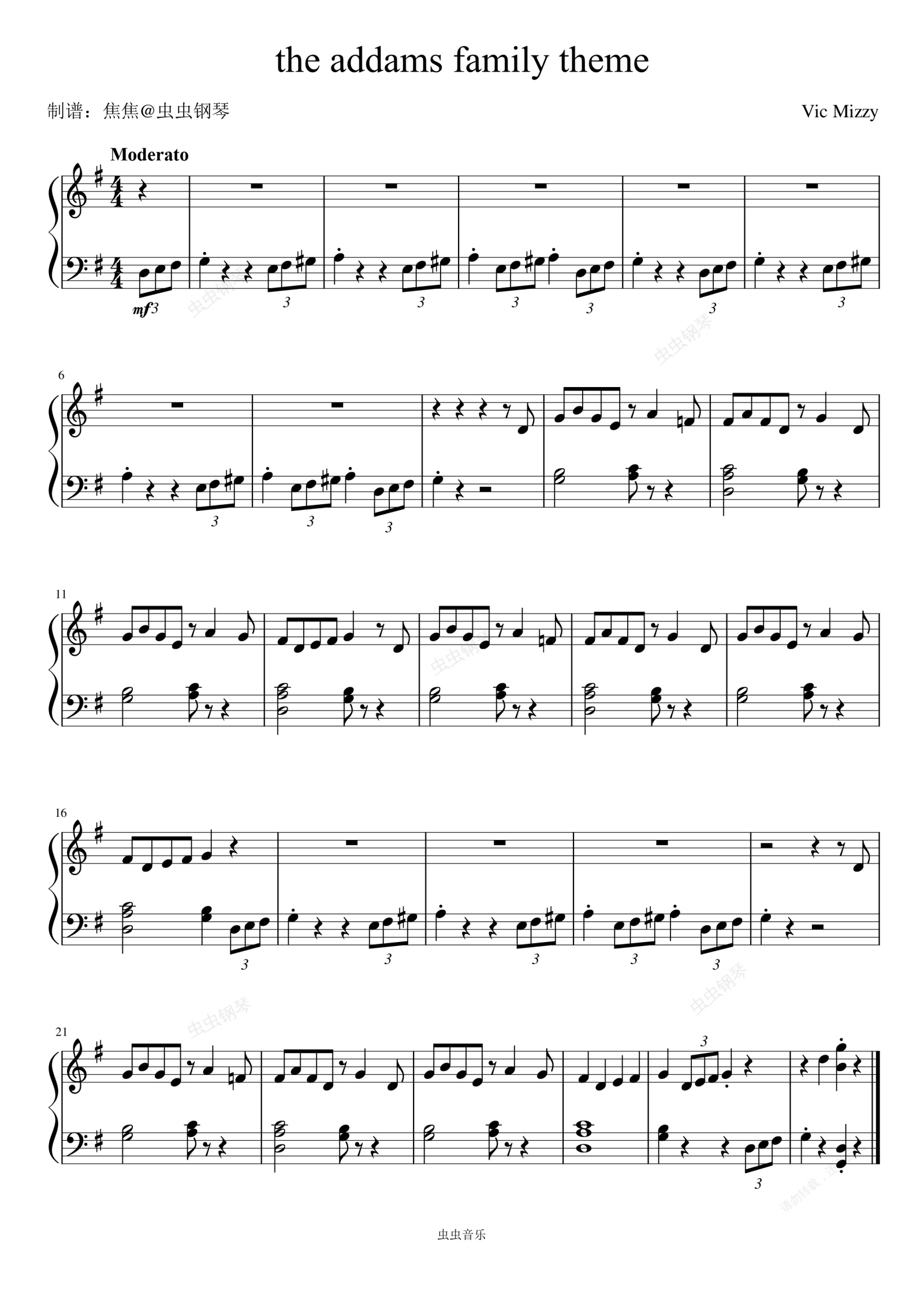 钢琴谱:The Addams Family (Theme) - Christina Aguilera (克里斯蒂娜·阿奎莱拉)/Vic Mizzy