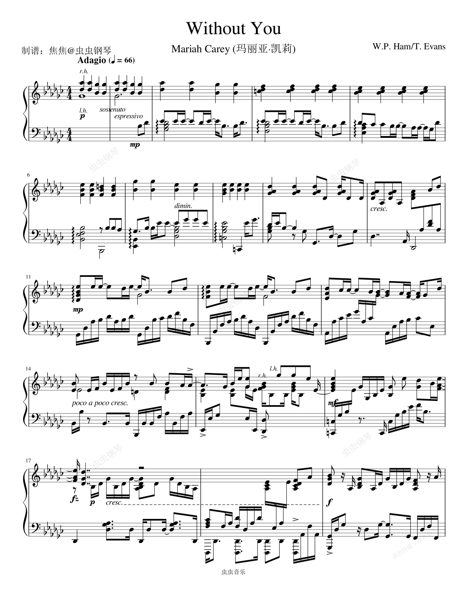 钢琴谱:Without You - Mariah Carey (玛丽亚·凯莉)