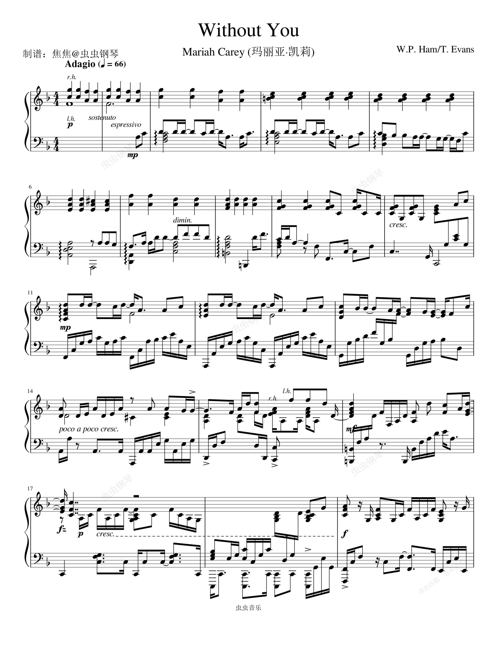钢琴谱:Without You - Mariah Carey (玛丽亚·凯莉)