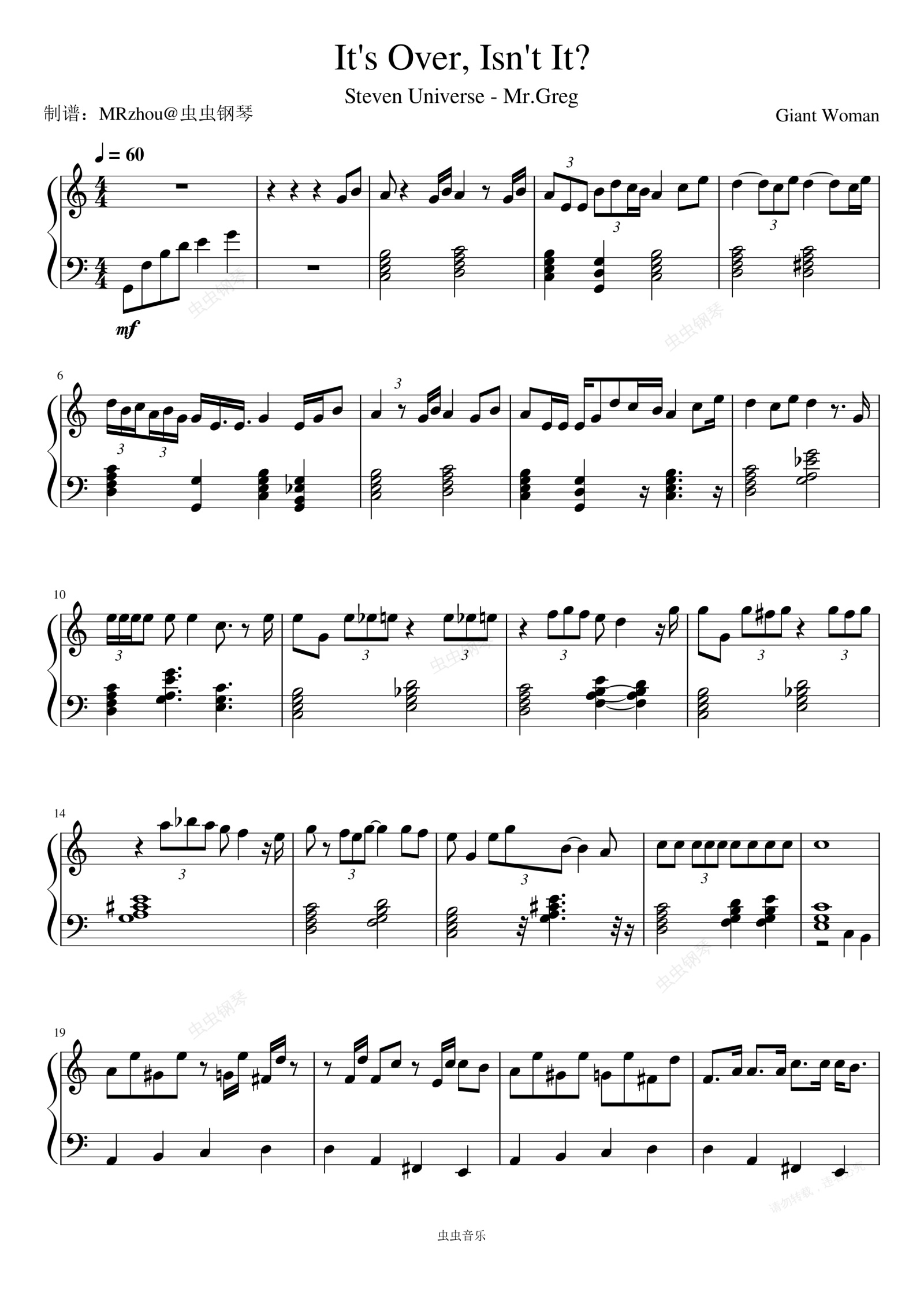 钢琴谱:It's Over, Isn't It? - Giant Woman