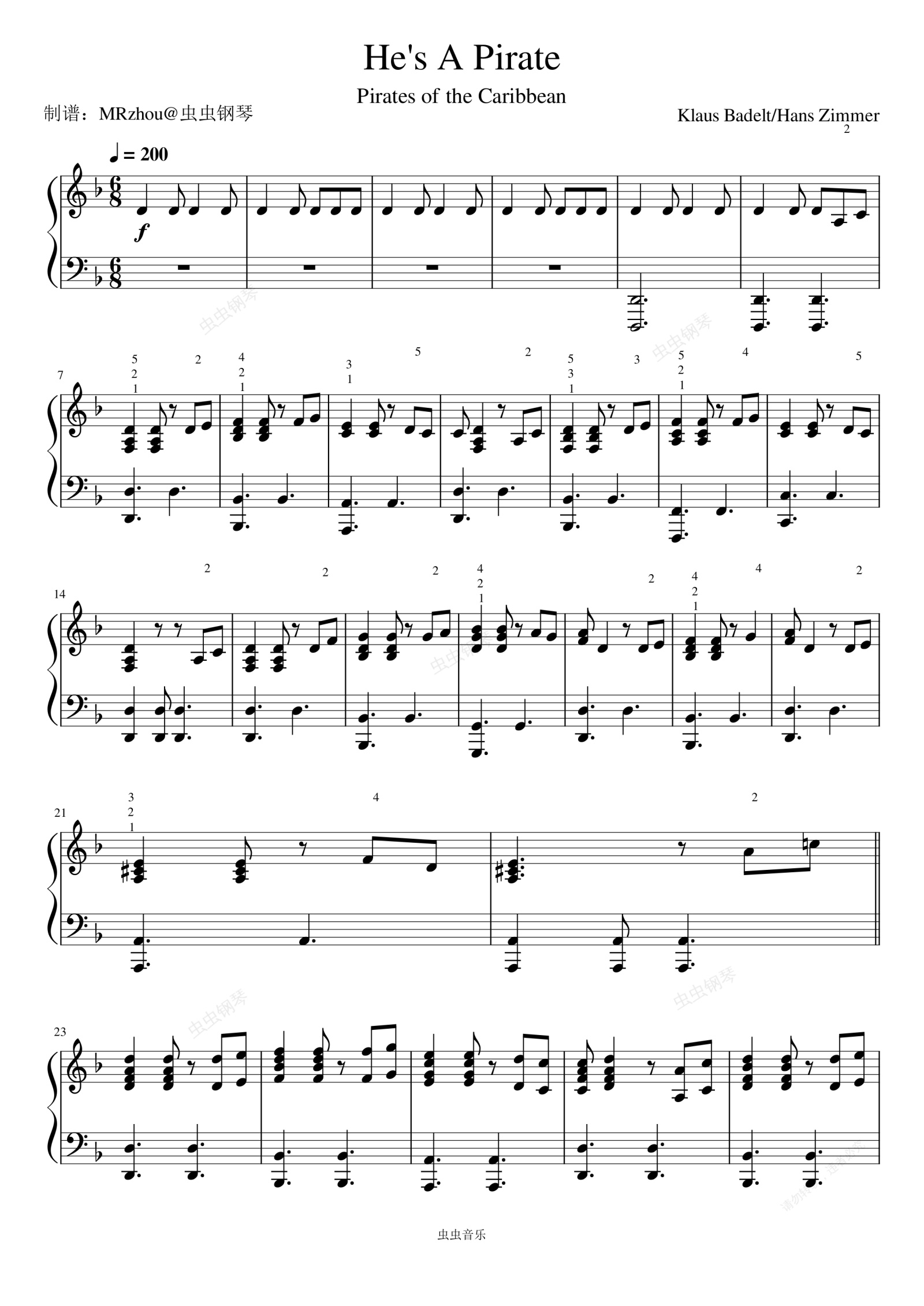 钢琴谱:加勒比海盗主题曲 He's a Pirate -