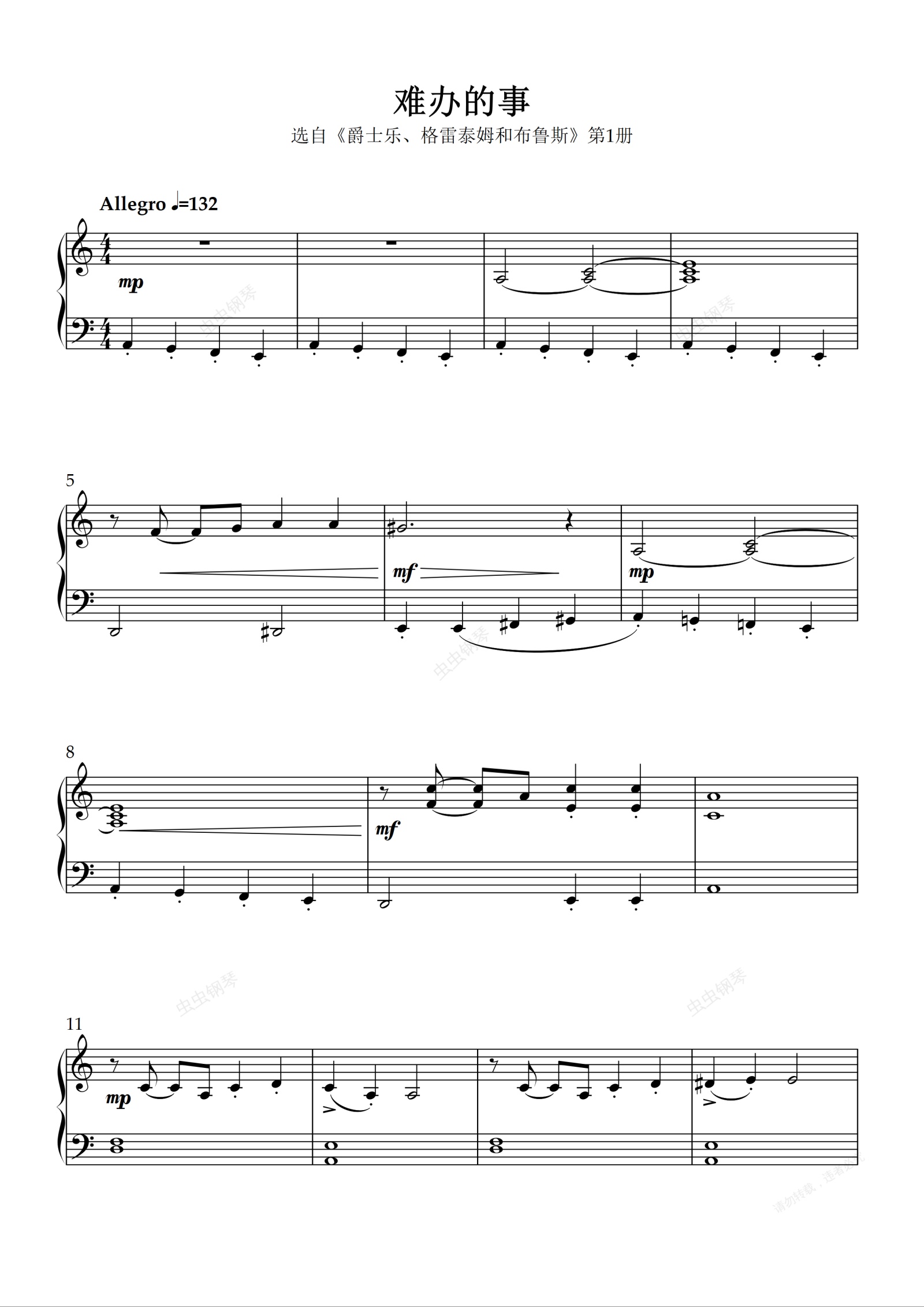 钢琴谱:一级-C-2. 难办的事