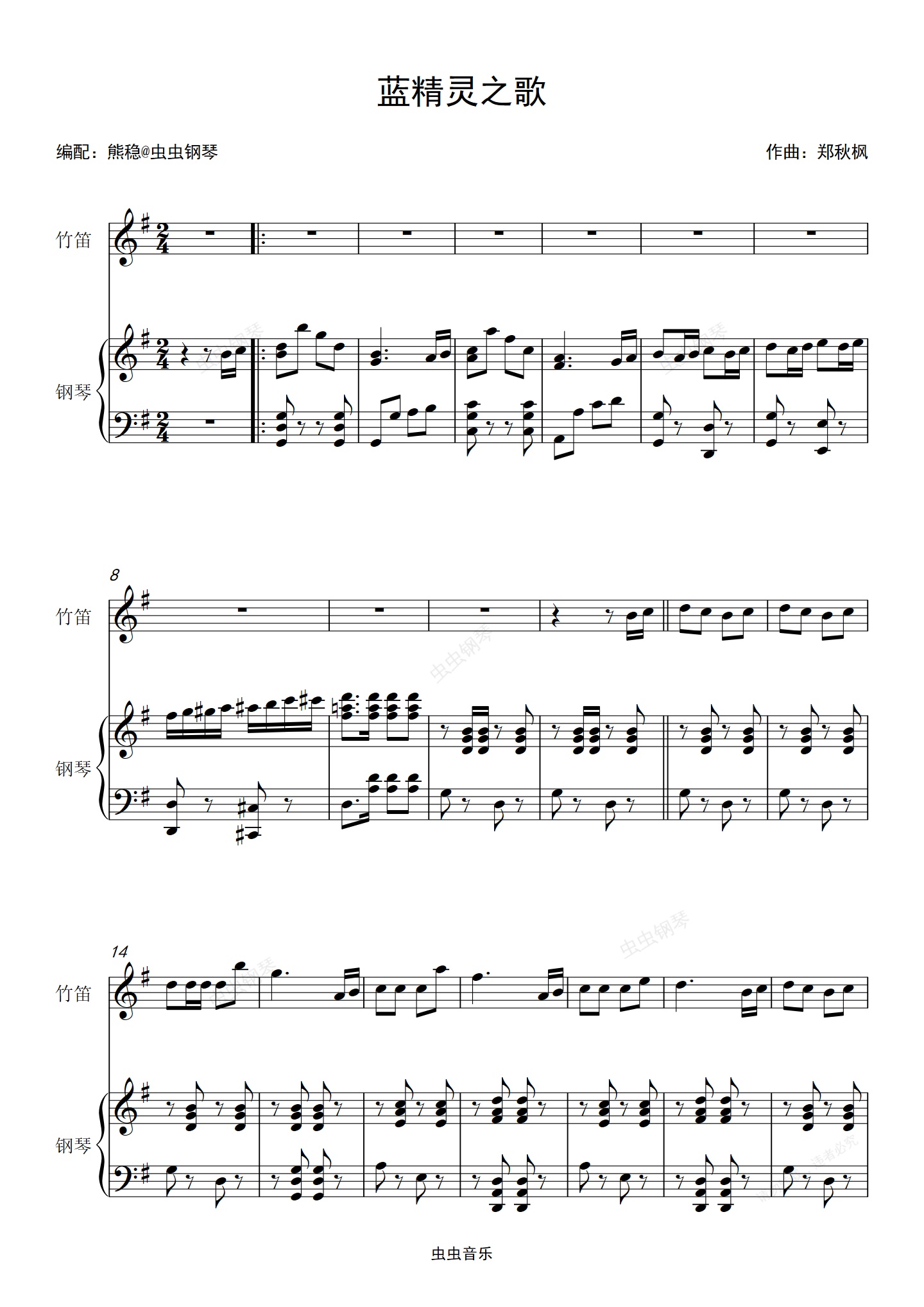 钢琴谱:《蓝精灵之歌》G调钢伴奏谱