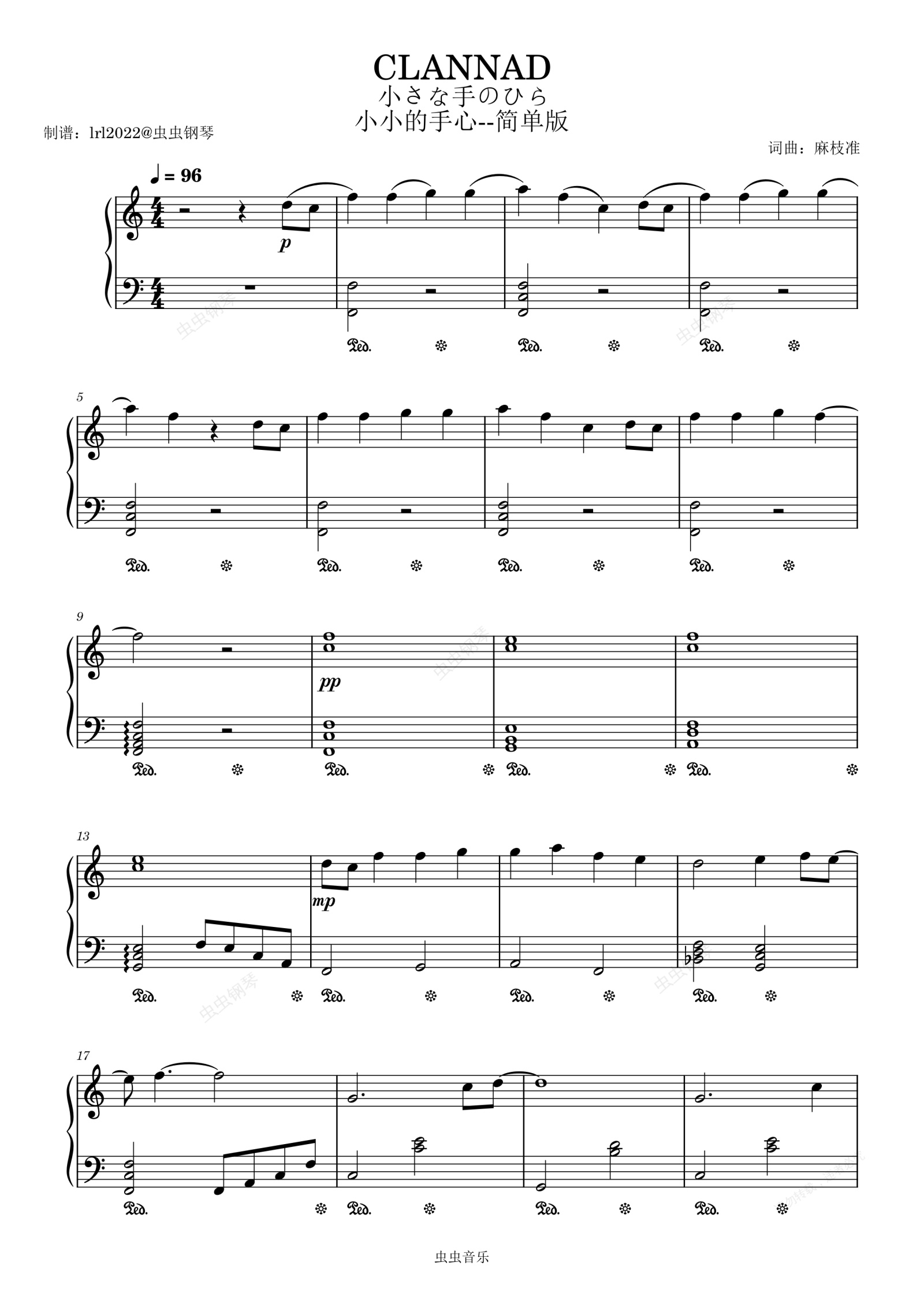 钢琴谱:小小的手心-简单版-CLANNAD-The Palm of a Tiny Hand-小さなてのひら