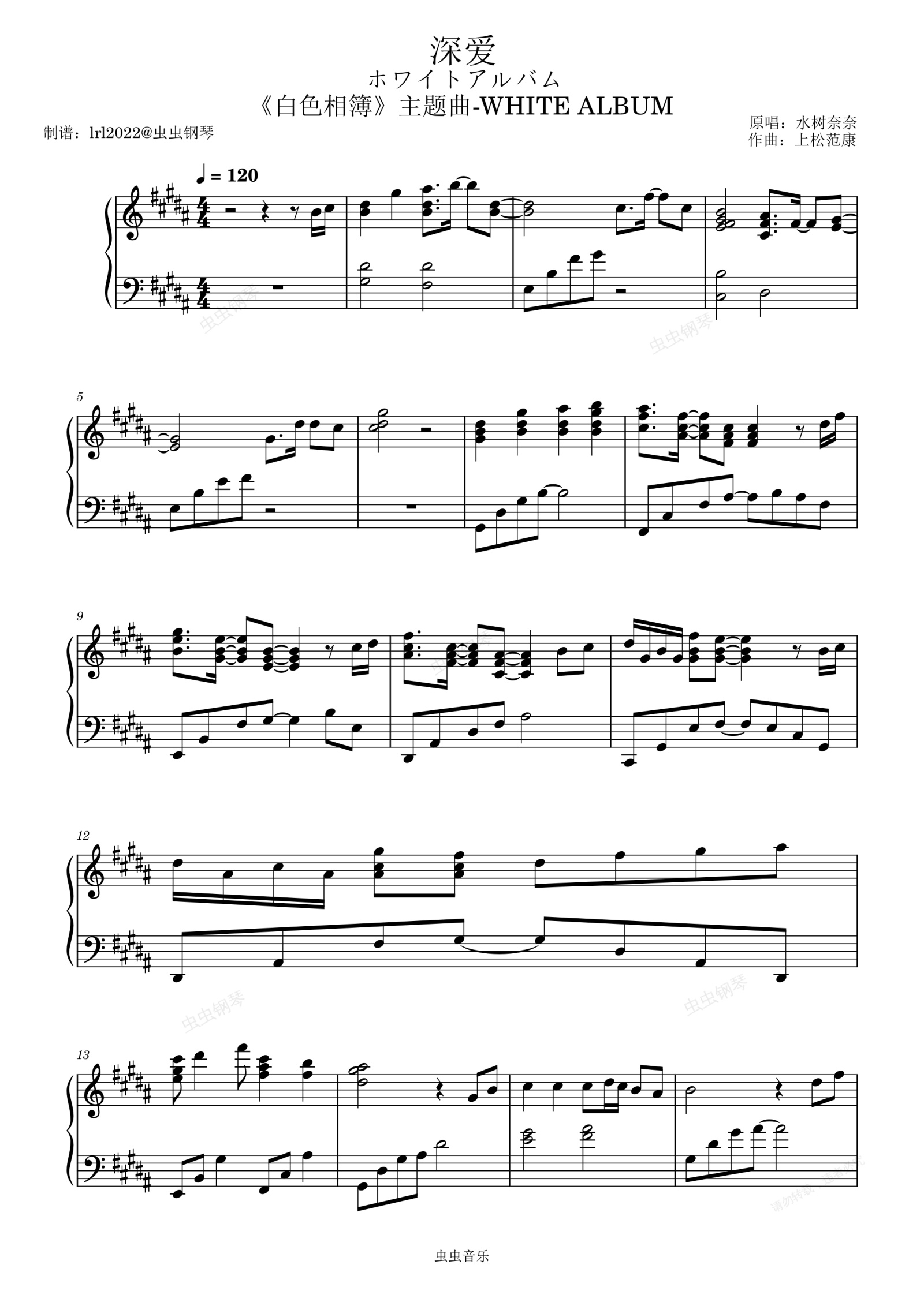 钢琴谱:深爱-《白色相簿》主题曲-WHITE ALBUM-Deep Love-上松范康
