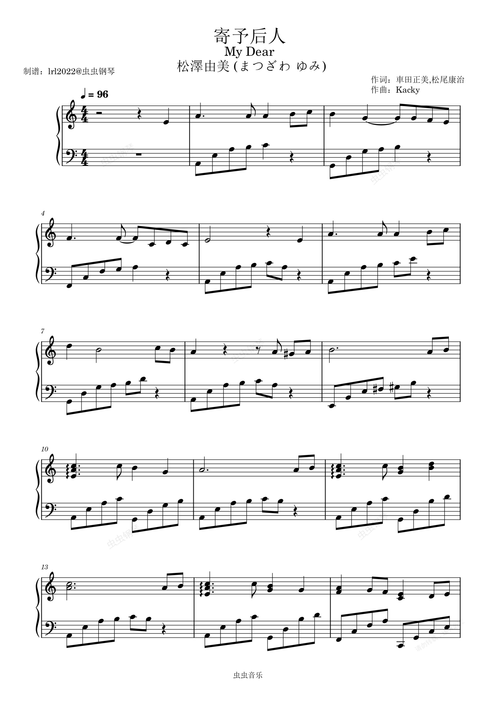钢琴谱:寄予后人-My Dear-简单版独奏谱-《圣斗士星矢冥王冥界篇》片尾曲-托す者へ