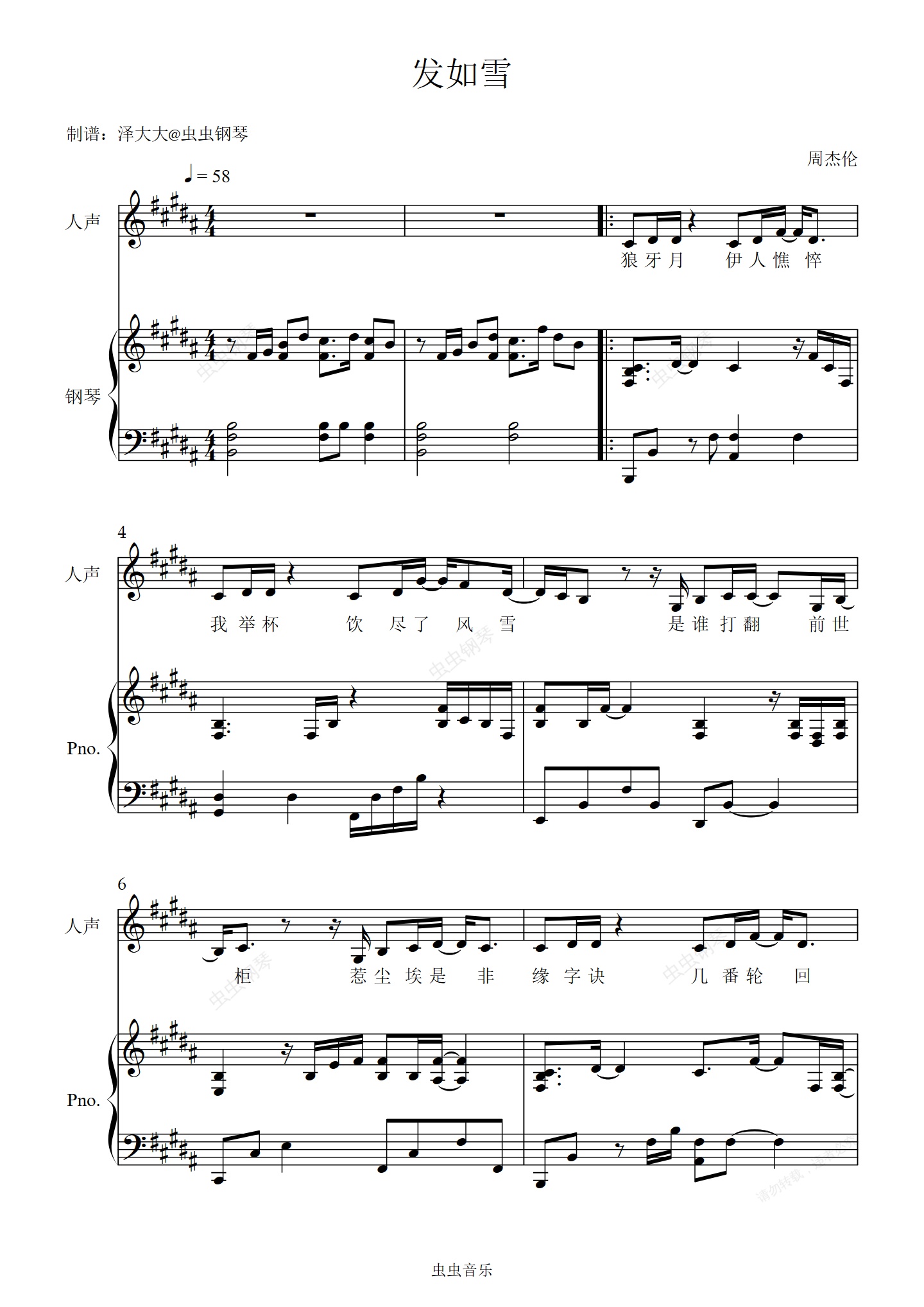 钢琴谱:发如雪【原版弹唱附词】泽大大 周杰伦