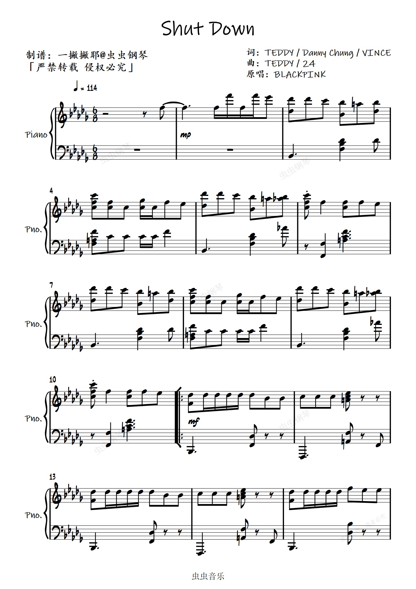 钢琴谱:绝美独奏《Shut Down》BLACKPINK「一撇撇耶」