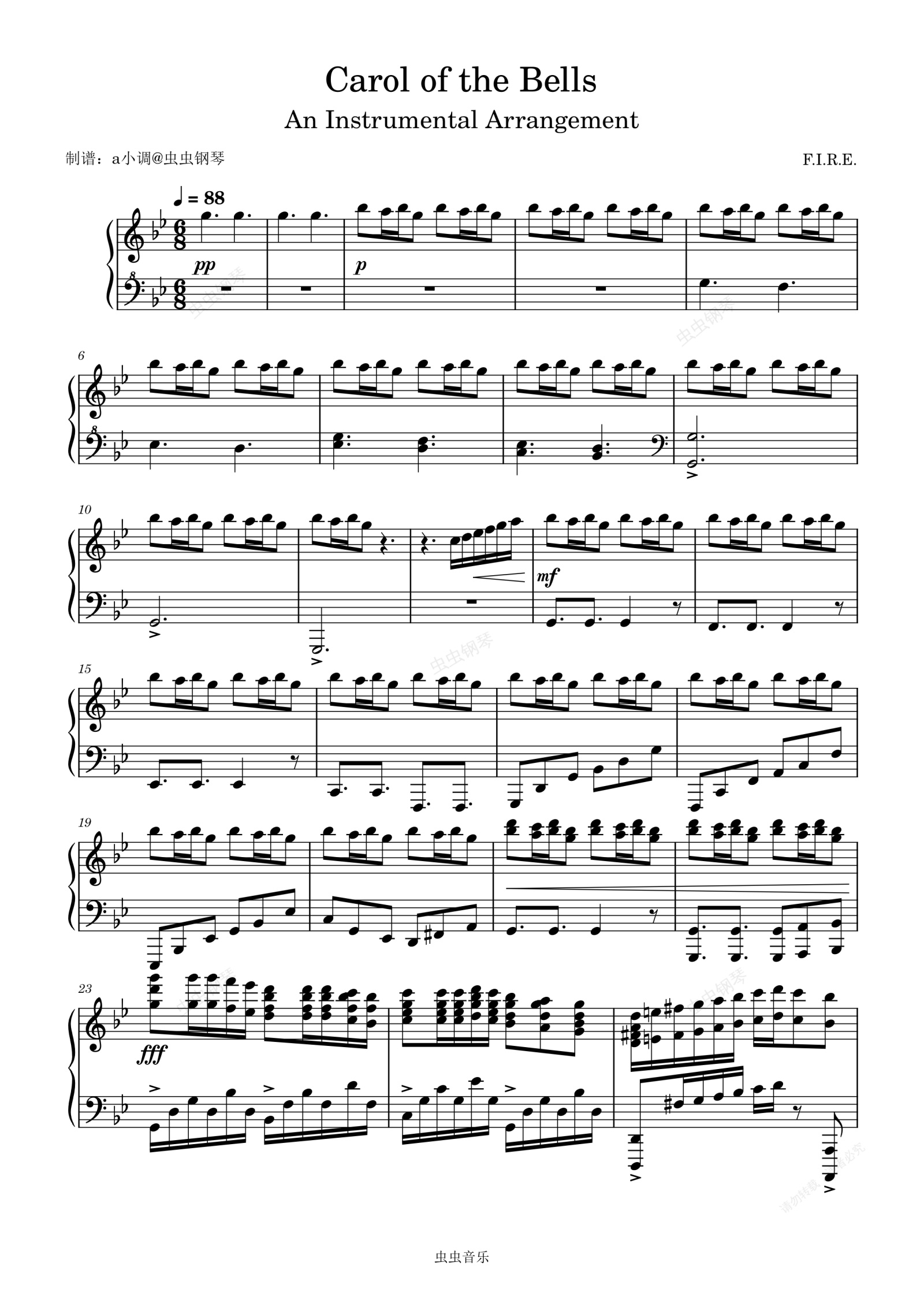 钢琴谱:Carol of the Bells F.I.R.E.