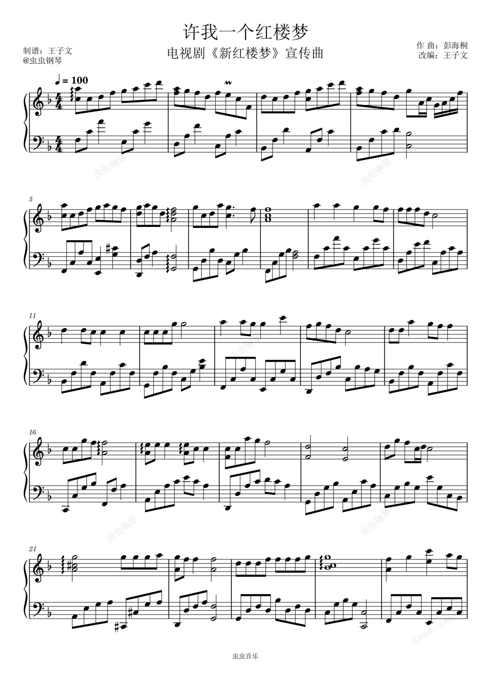 钢琴谱:许我一个红楼梦-新红楼梦-宣传曲