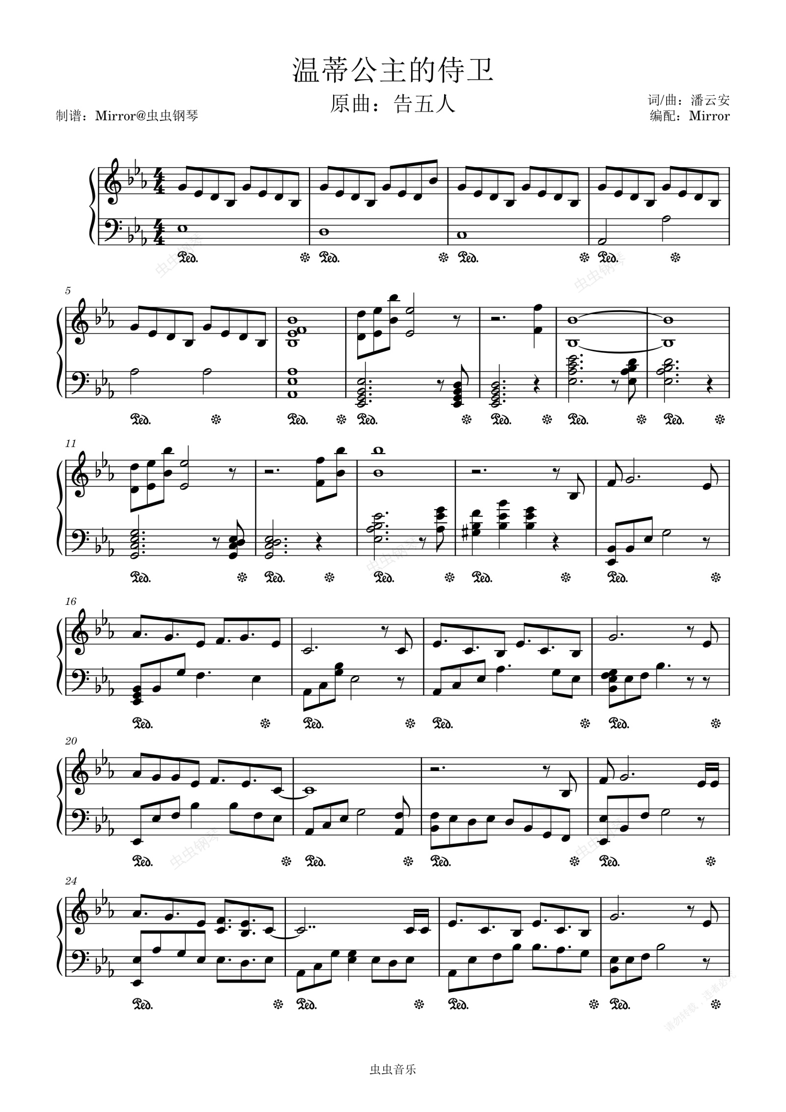 钢琴谱:温蒂公主的侍卫(钢琴原调)