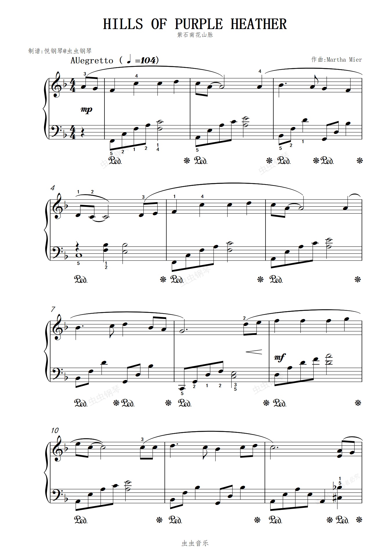 钢琴谱:紫石南花山脉//HILLS OF PURPLE HEATHER【治愈小曲】