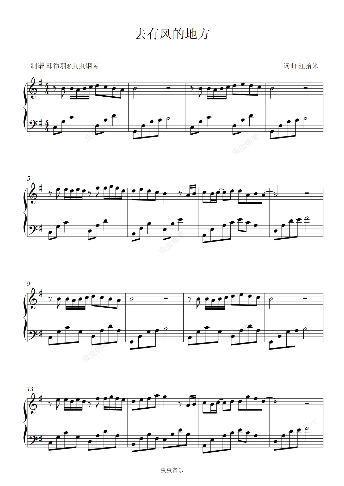 钢琴谱:郁可唯 去有风的地方电视剧同名主题曲
