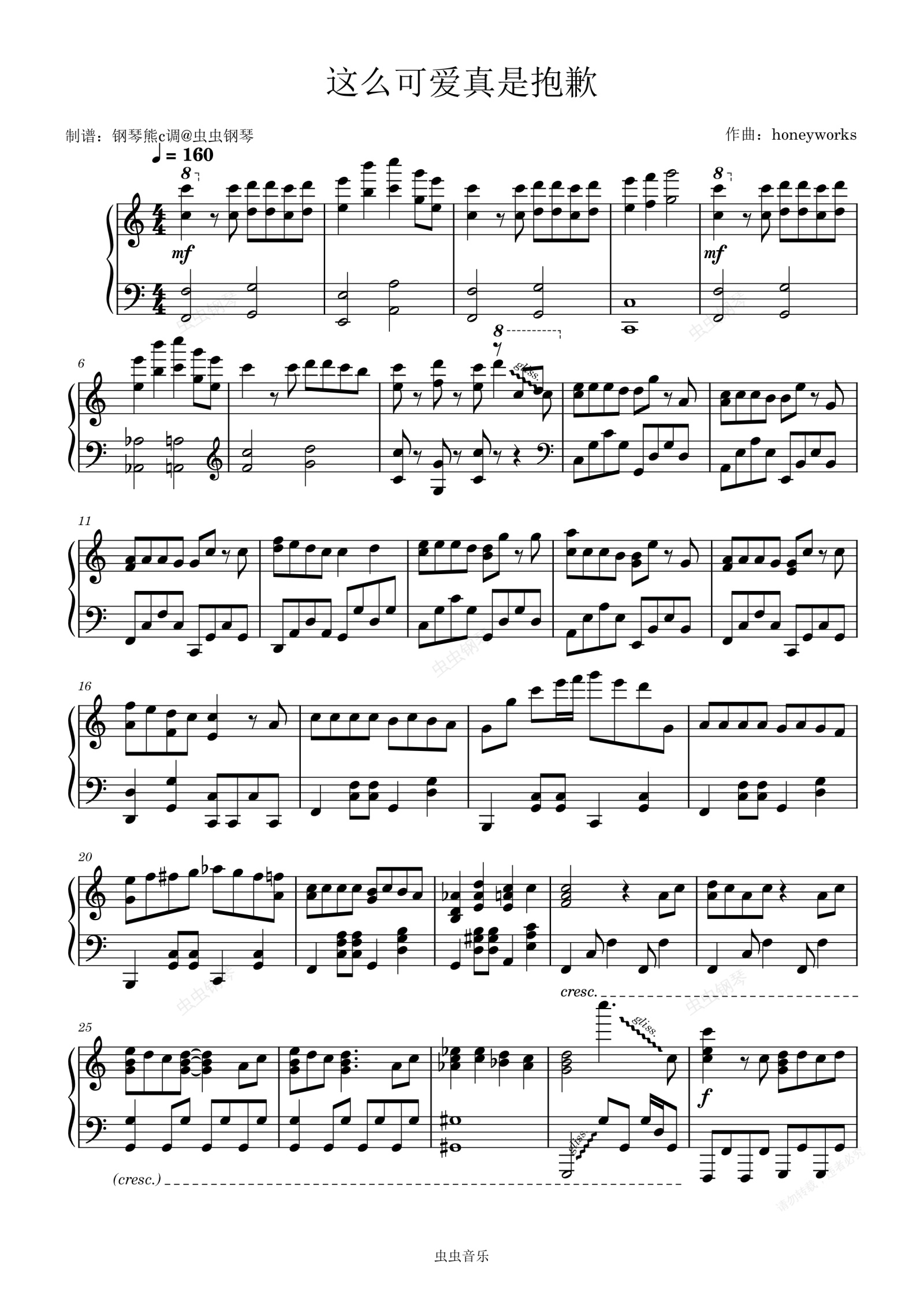 钢琴谱:C调《这么可爱真是抱歉》《可愛くてごめん》喜欢的兄弟记得点小红心哦~👇👇👇♥♥♥