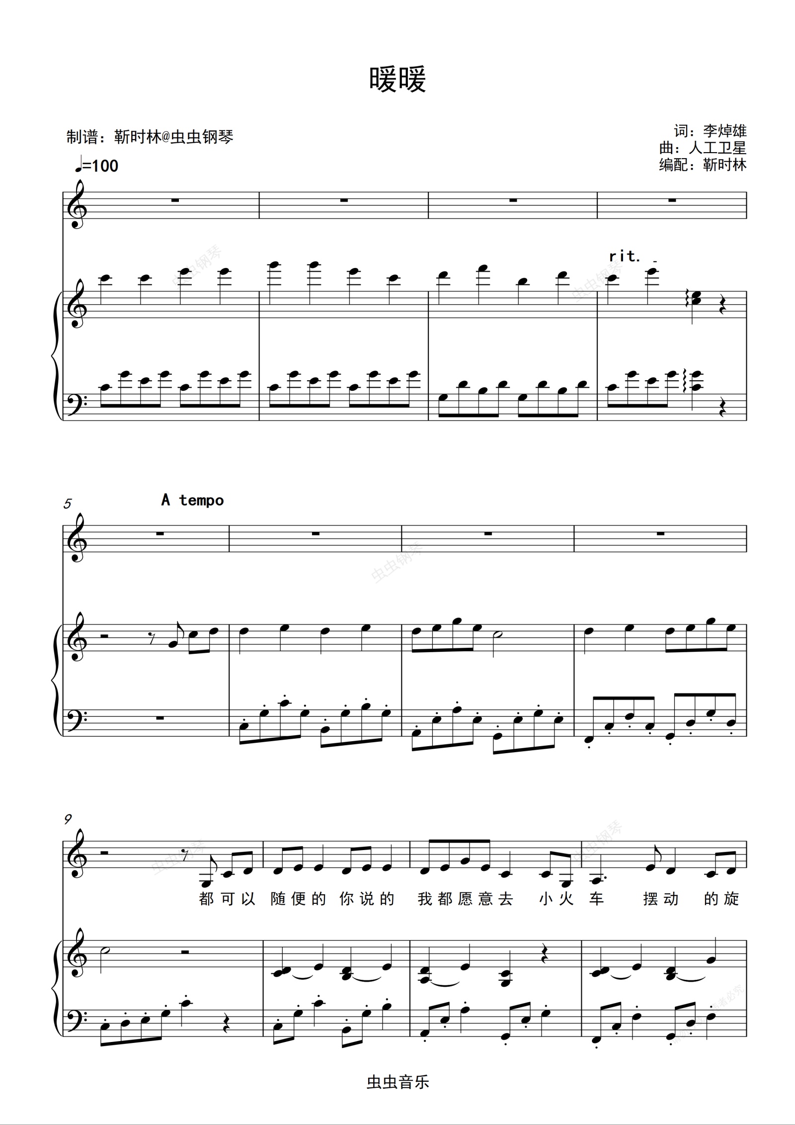 钢琴谱:暖暖-梁静茹 C调弹唱