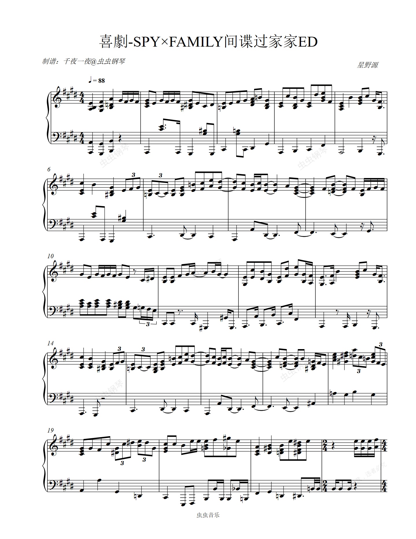 钢琴谱:SPY x FAMILY ED‘Kigeki’{间谍过家家} 片尾曲“喜剧”钢琴版演奏