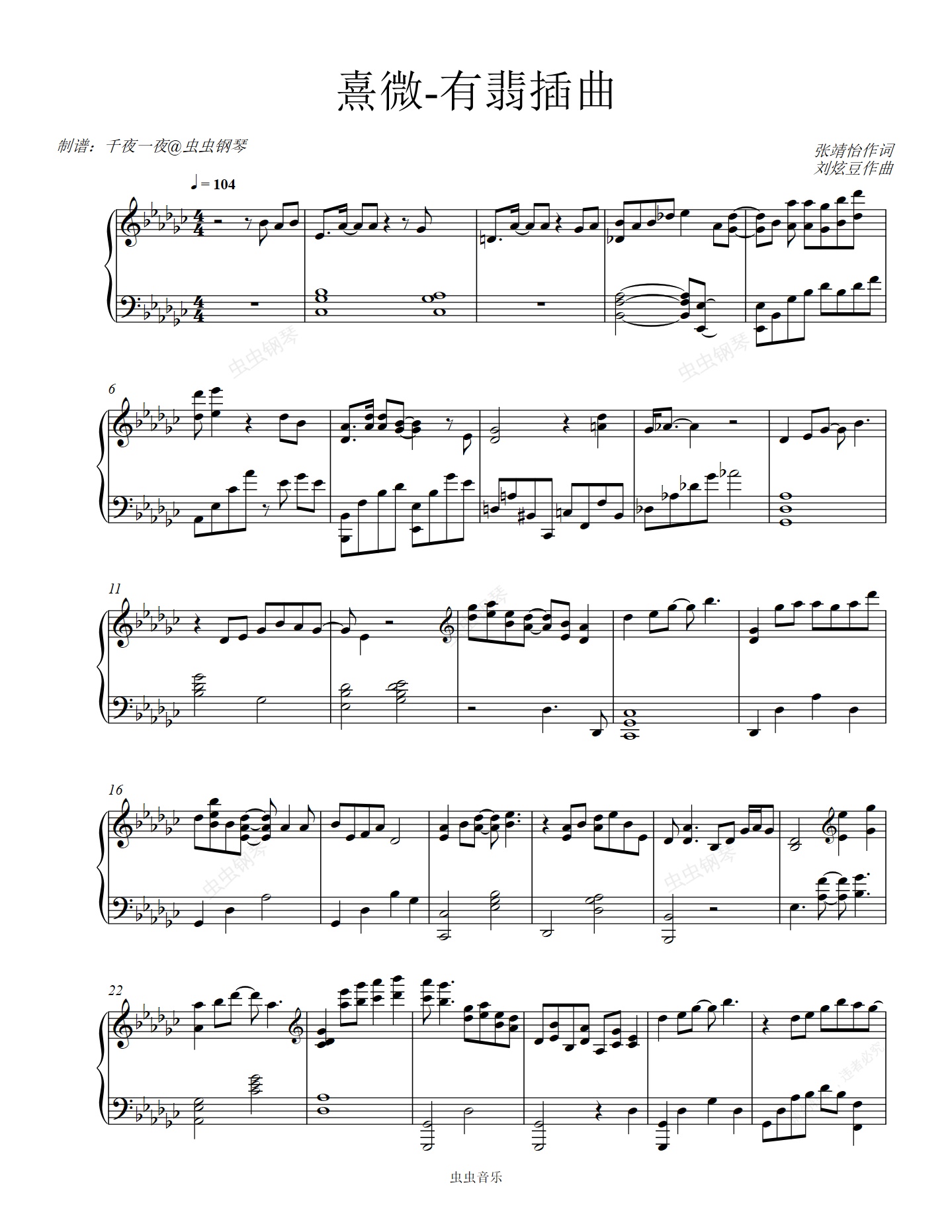 钢琴谱:【王一博】《熹微》——「有翡」插曲 钢琴Cover