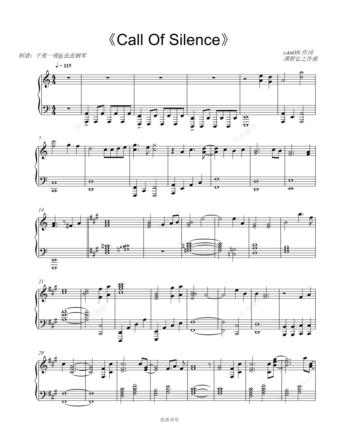 钢琴谱:钢琴演奏版《Call of Silence-进击的巨人(泽野弘之)》