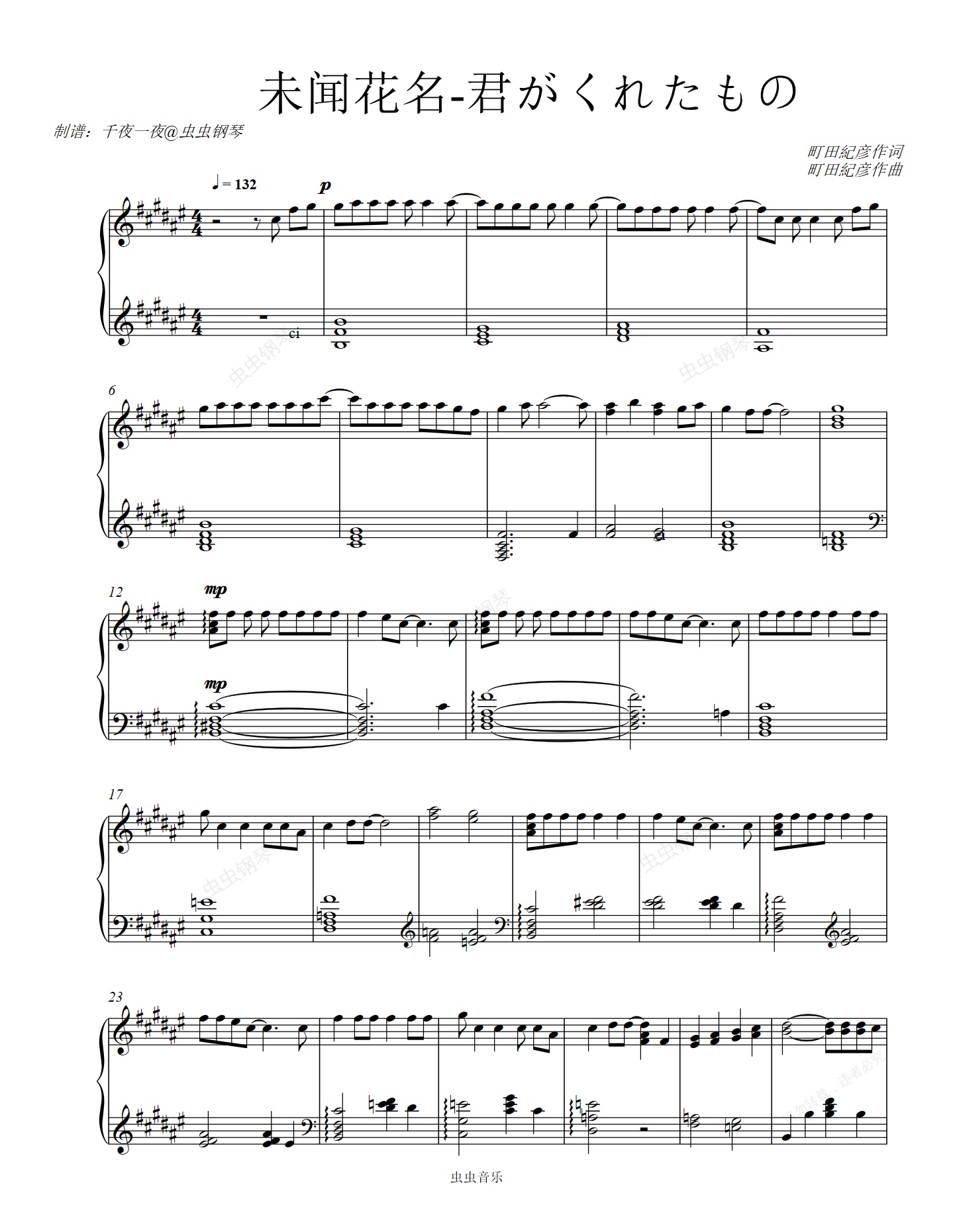 钢琴谱:ecret base 〜你给我的所有〜 - 未闻花名 ED 钢琴版