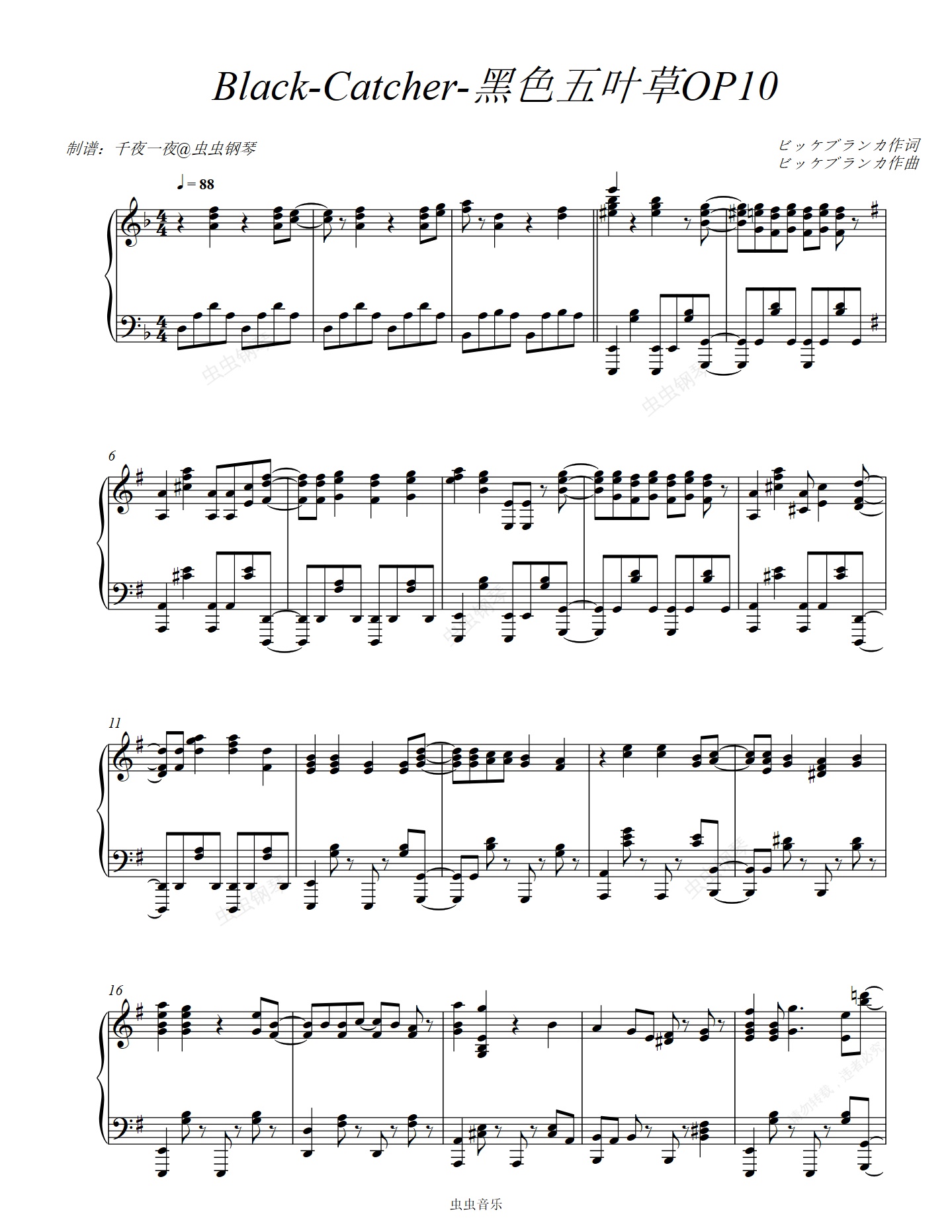 【黑色五叶草 OP 10 FULL - "Black Catcher" = ビッケブランカ】特效钢琴 / Fonzi M