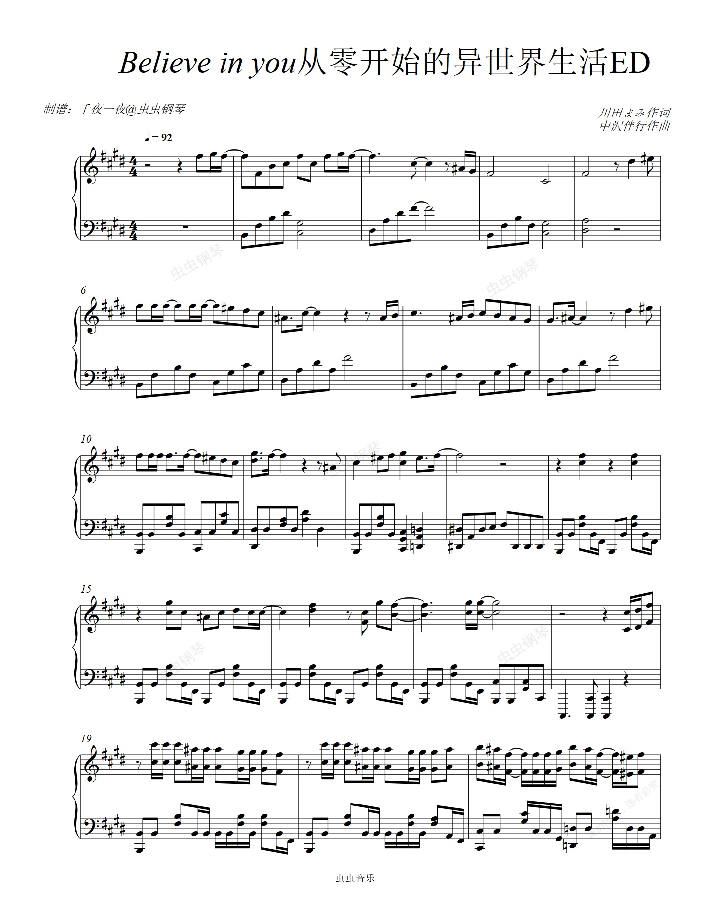 钢琴谱:钢琴】Re:从零开始的异世界生活 第二季 ED2「Believe in you」