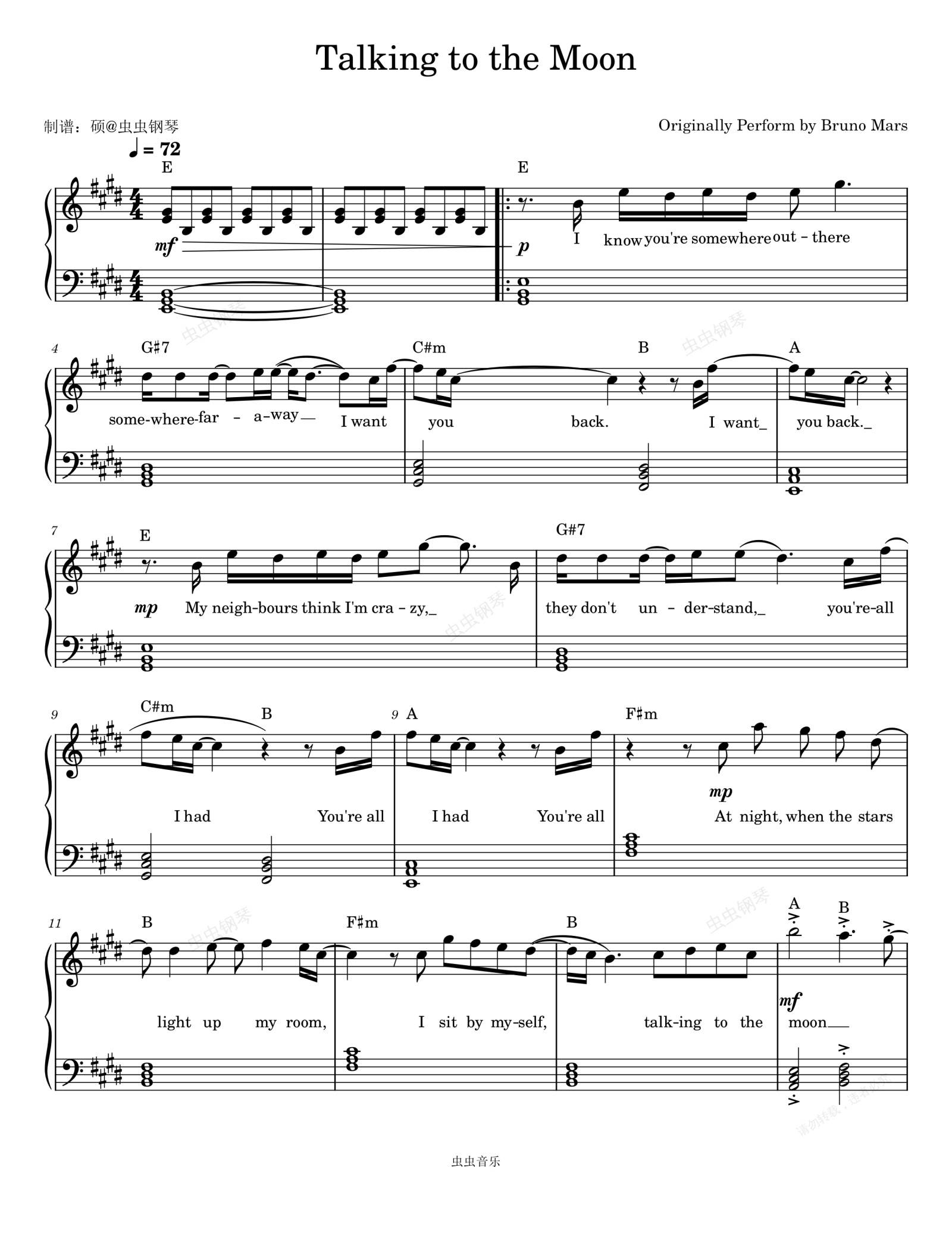 钢琴谱:Talking to the Moon - Bruno Mars (布鲁诺·马尔斯)