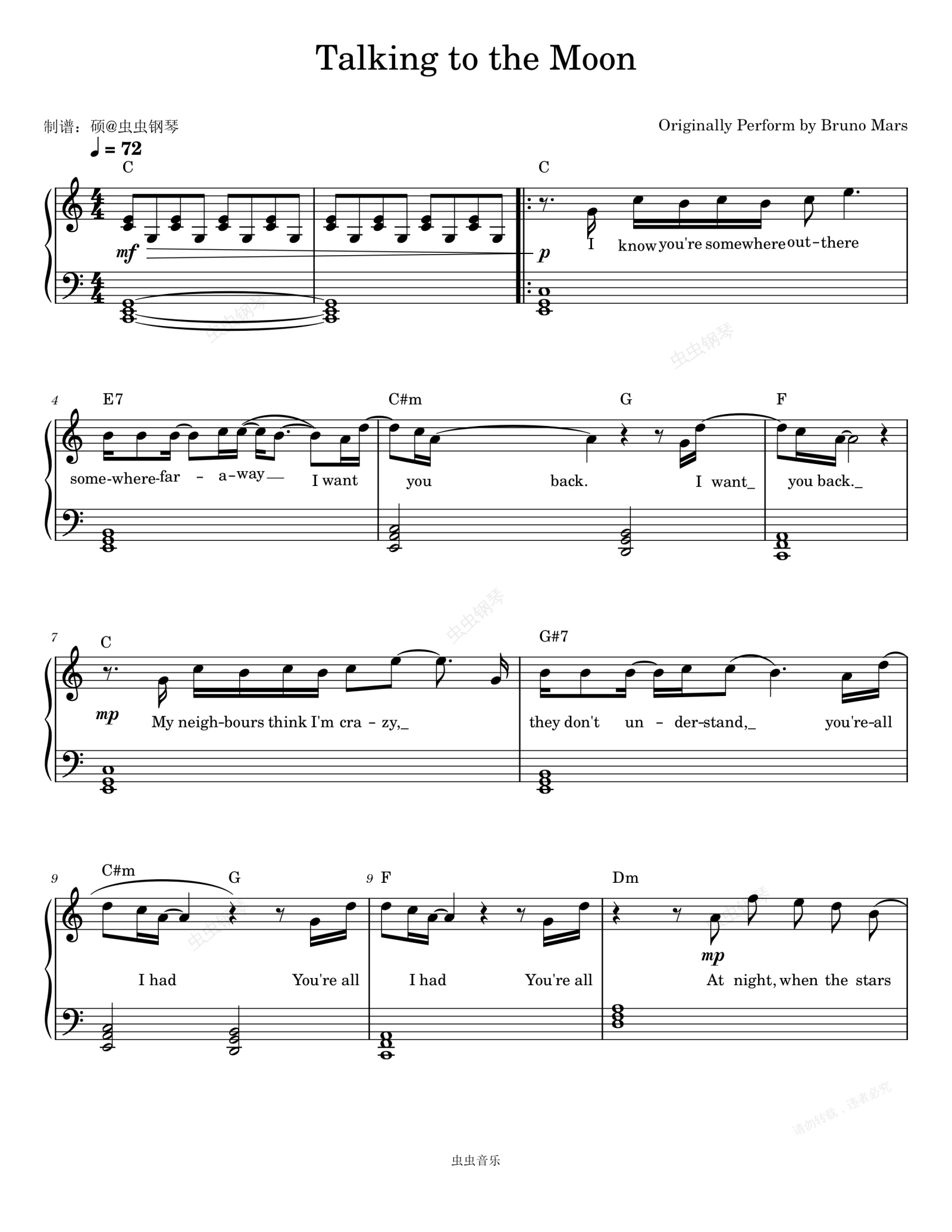 钢琴谱:Talking to the Moon - Bruno Mars (布鲁诺·马尔斯)