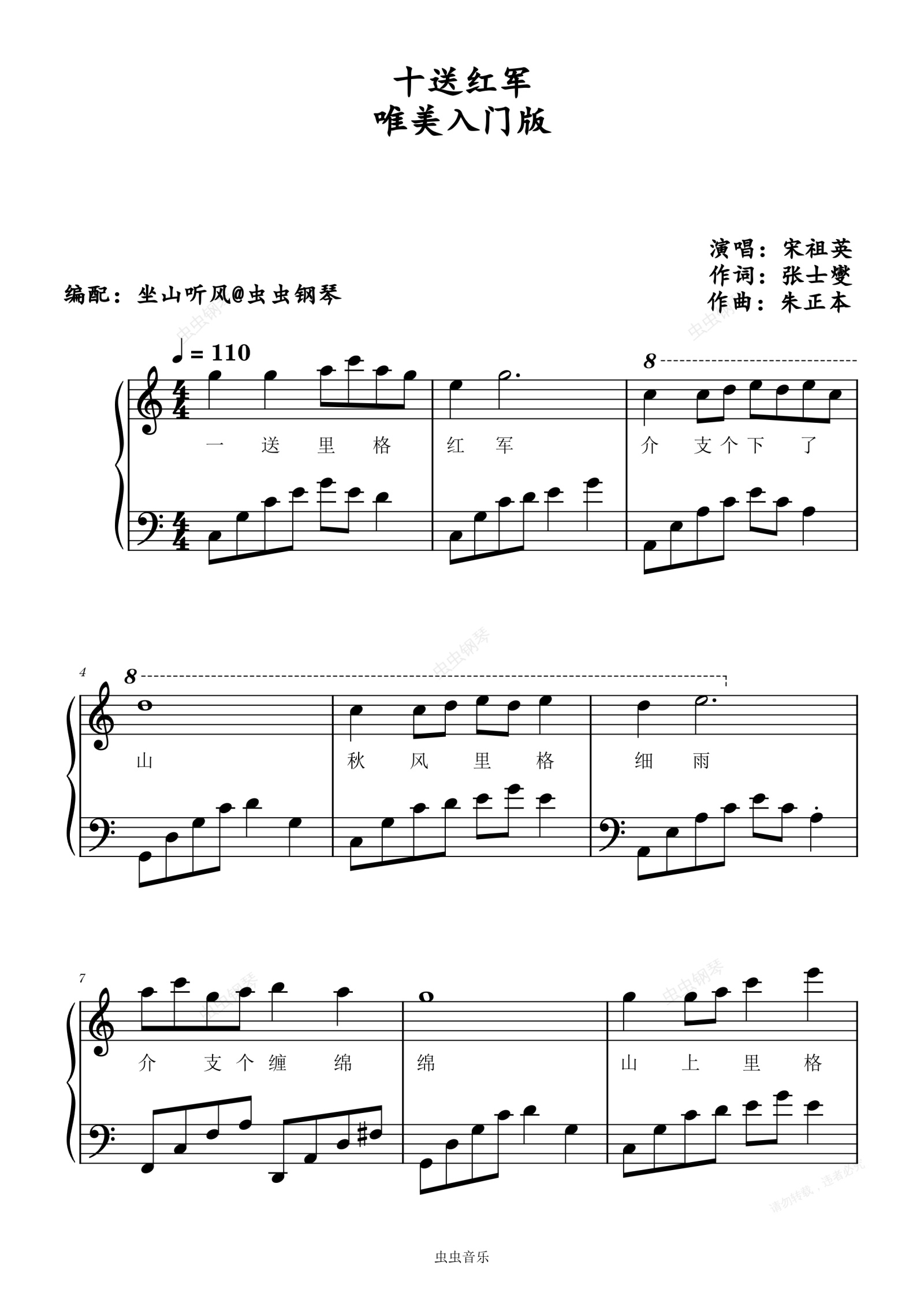 钢琴谱:十送红军—— 唯美入门版