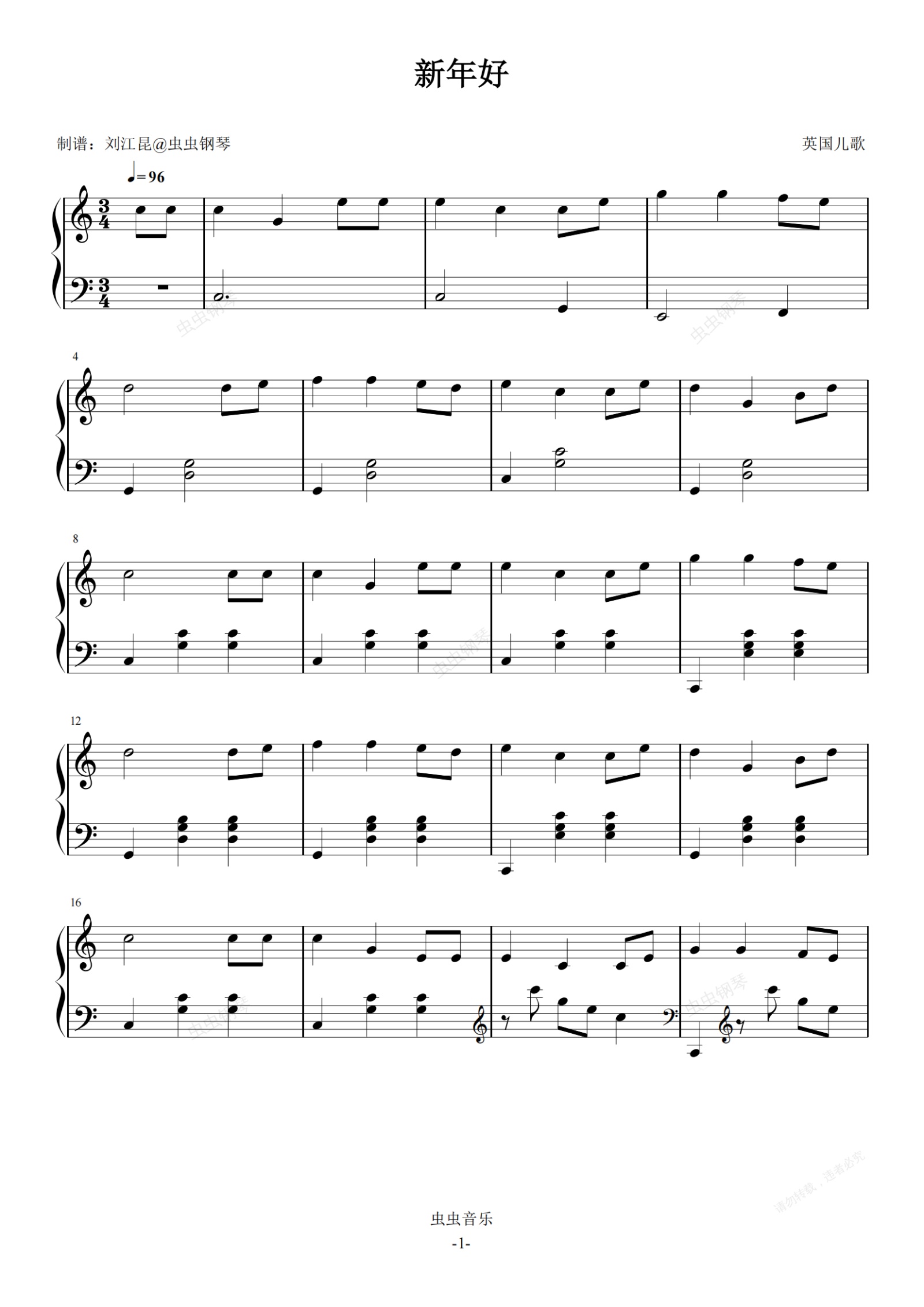 钢琴谱:新年好(简易变奏版本)