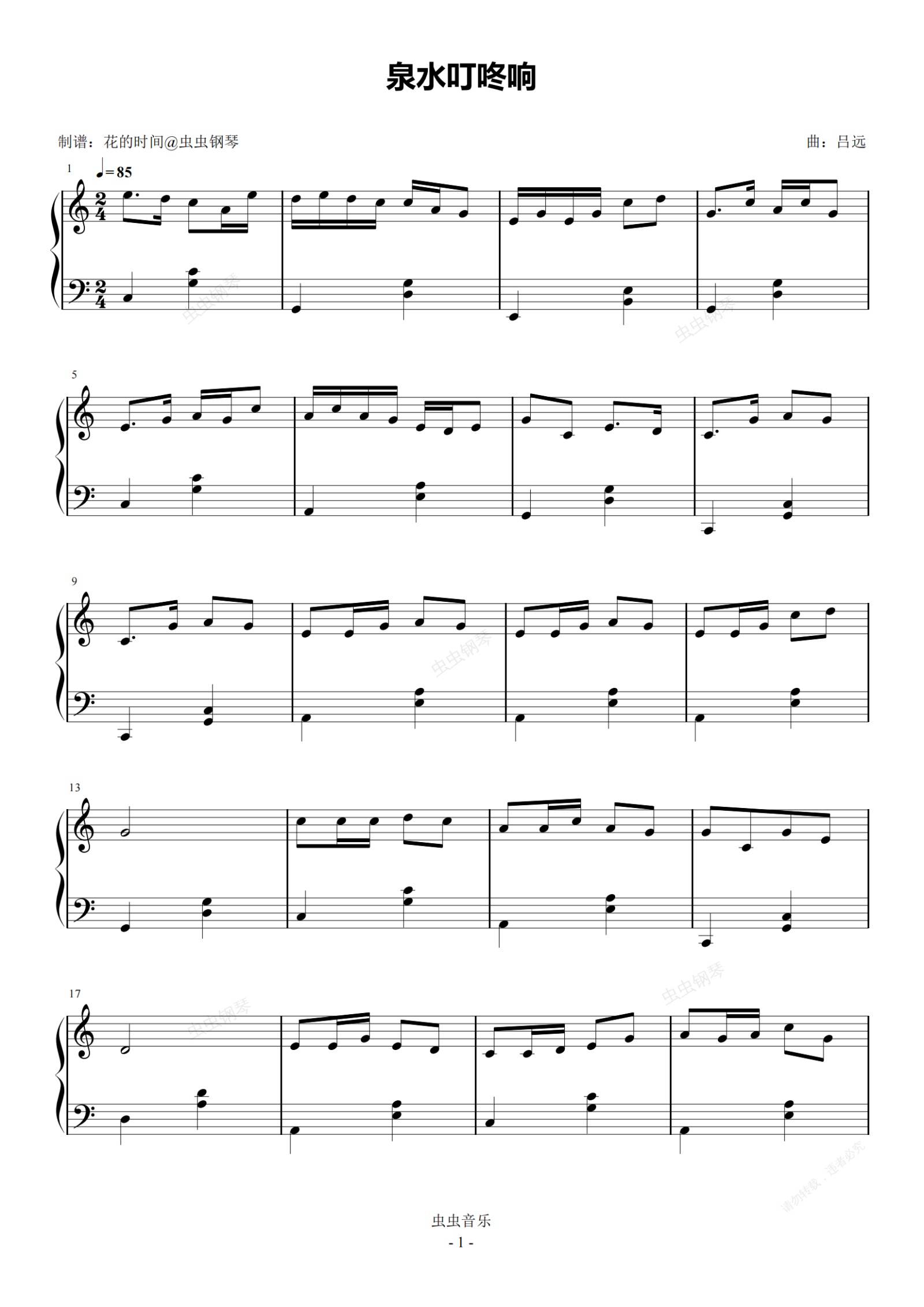 钢琴谱:泉水叮咚响 C调简易版 流行经典