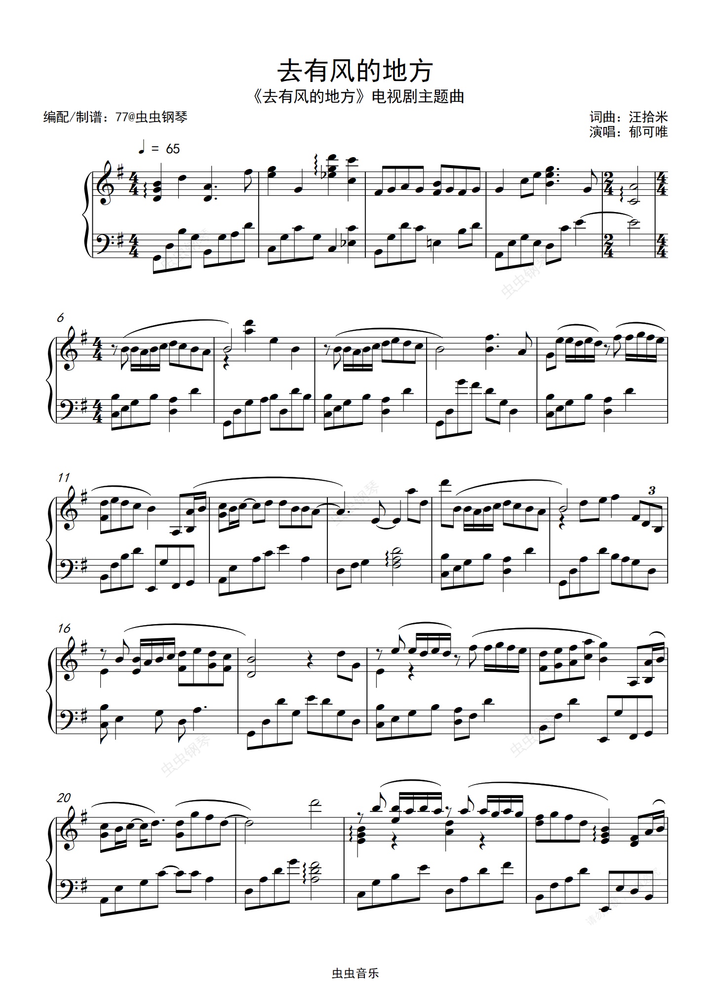 钢琴谱:郁可唯-《去有风的地方》钢琴独奏