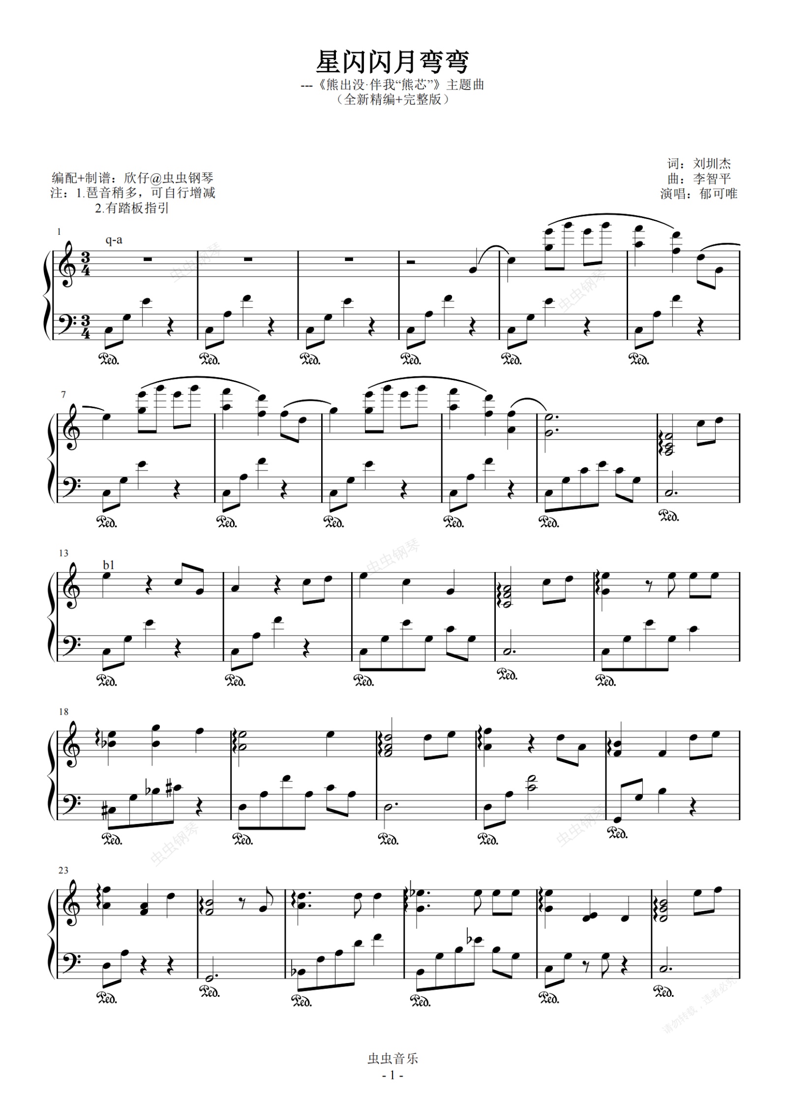 钢琴谱:郁可唯-C《星闪闪月弯弯》(《熊出没·伴我"熊芯"》主题曲,完整版)