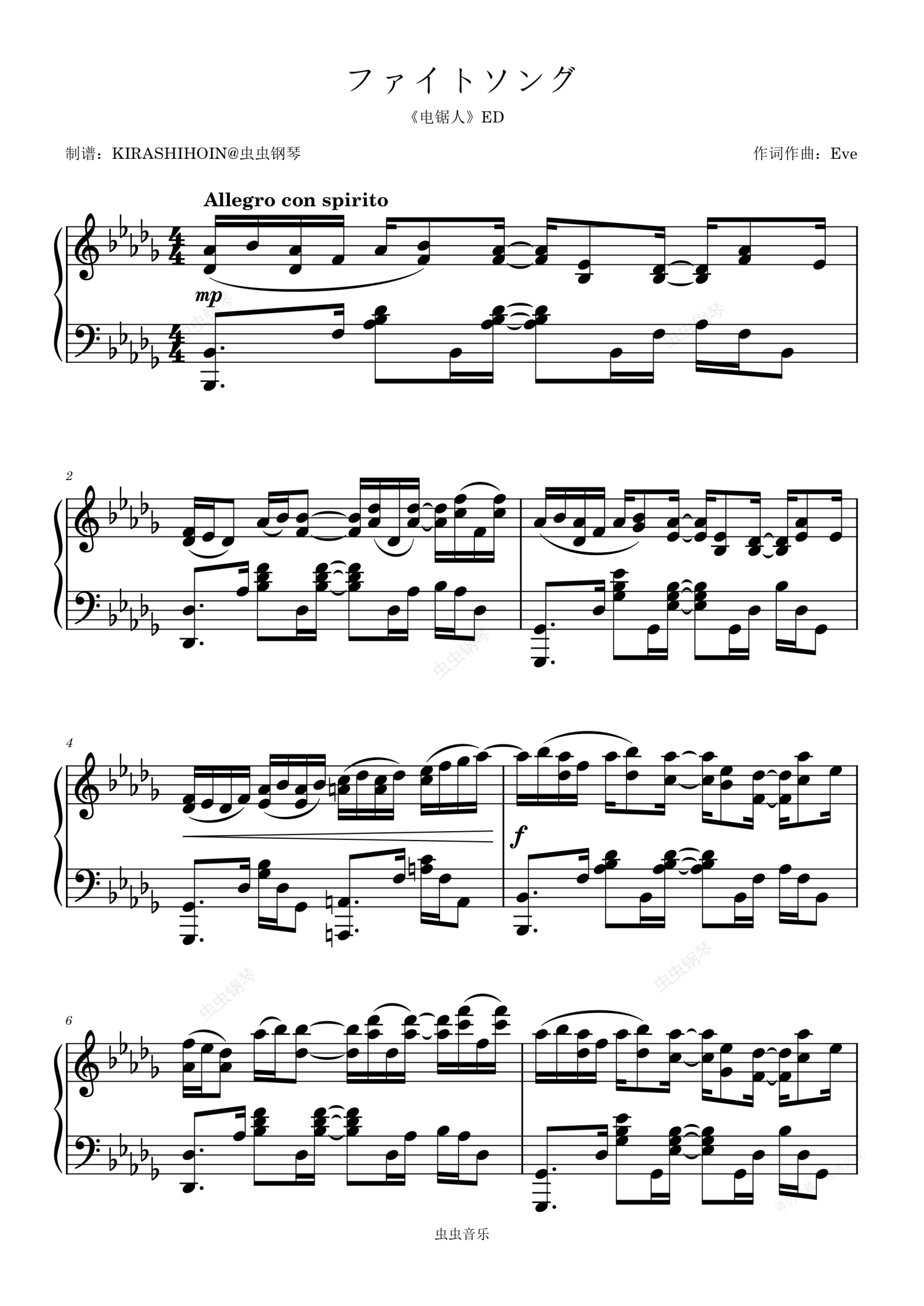 钢琴谱:ファイトソング(《电锯人》ED/片尾曲)- Eve